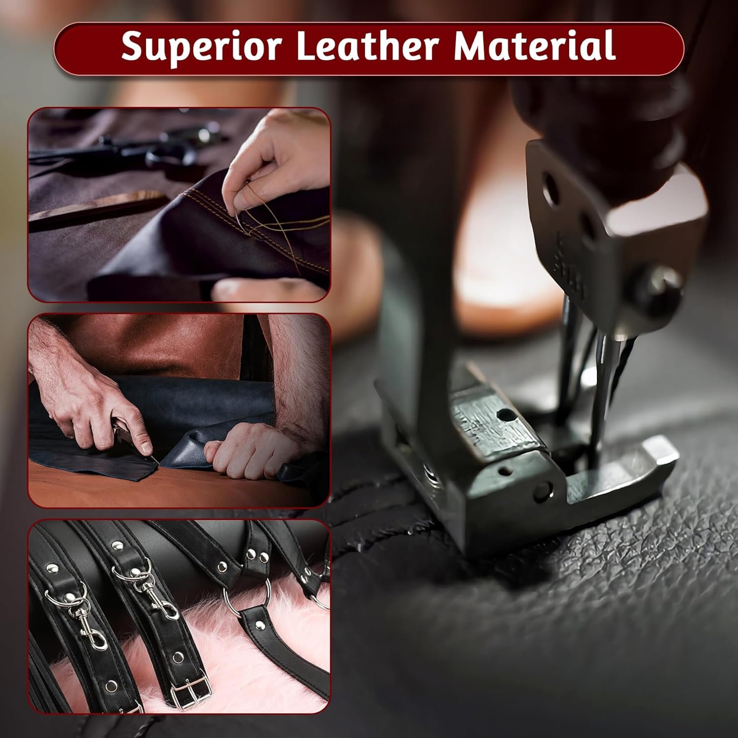 Soft Leather Inner Lining Bondage Set: Made of PU leather, the inner lining makes wearing it extra comfy! Use the buckles to adjust for the perfect fit and enjoy with a whip, nipple toys, ball gag items, or other accessories attached to them