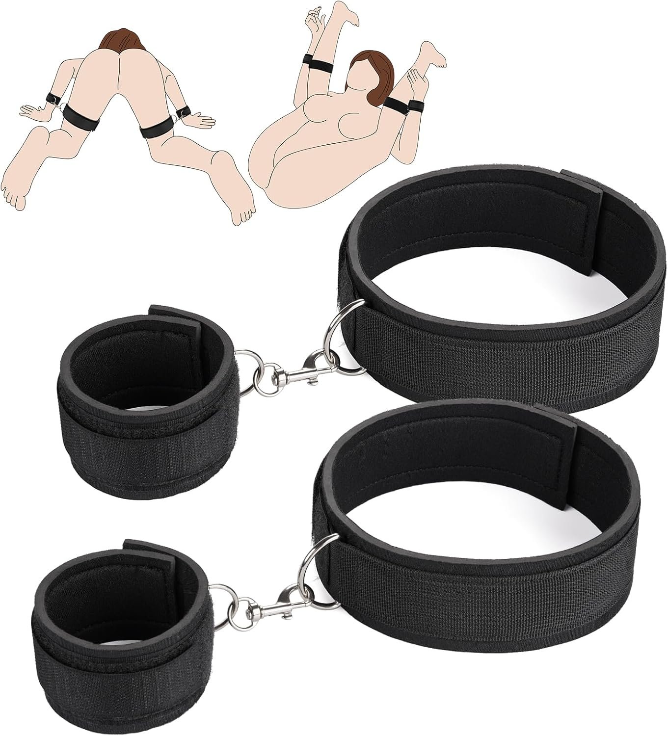 Bondage Restraints Wrist & Thigh Cuffs BDSM Kit, Sex Toys for Couples with Adjustable Leg Straps Handcuffs Adult Toys