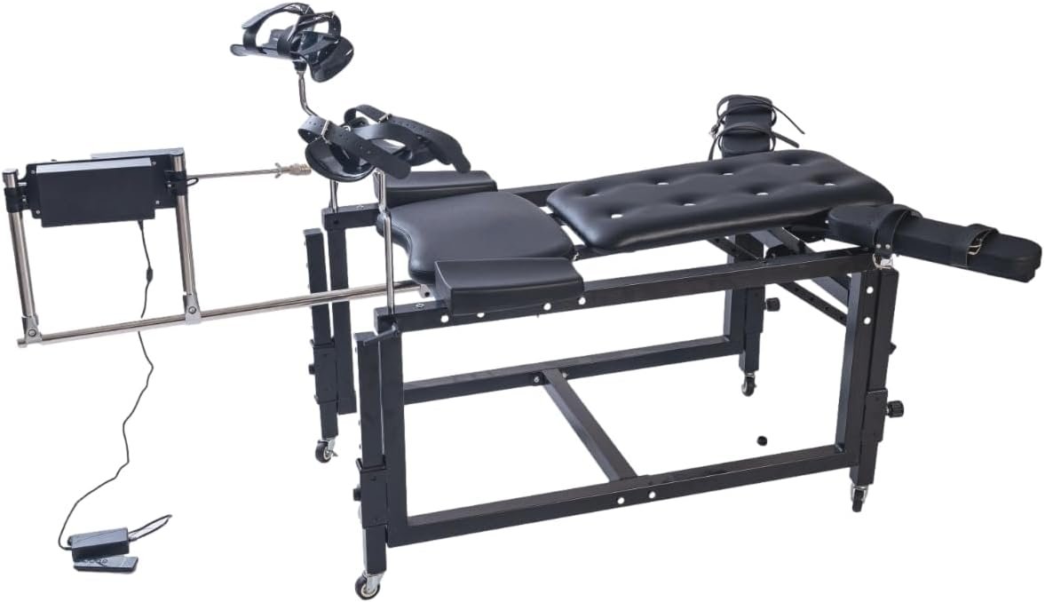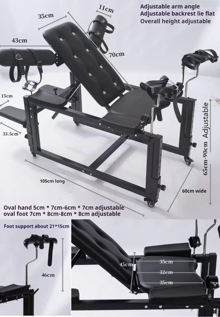 Lean back, lift your legs, and enjoy the high-end, sexy luxury of this adjustable restraint chair.Now, you can adjust your or your partner’s posture to the angle that best suits both parties.This chair has a heavy-duty frame and can bear 440 pounds (199 kg).Using the adjustable back panel, you can let them sit upright so that they can watch your pleasure and pain, or let them lie down and let their bodies relax and stretch, exposing their breasts and abdomen for teasing, sensory games, and affectionate touching.Their leg height can also be adjusted to achieve comfort; if they feel better, they can raise or lower their legs a little bit.This device can be adjusted to achieve your comfort and theirs!When they sink into plush foam pads covered with PVC leather, they will be able to handle longer scenes. When you play with them roughly or give a strong thrust, their bodies will have some padding to push in!In order to secure them in place, there are straps with ABS plastic buckles that can easily secure their legs and breasts.Whether it’s to restrain them safely or to prevent them from twisting excessively due to pain or pleasure, you can play whatever you want!Adjust the leg height and backplane angle, and adjust any other position and height of your own.After setting them up, tie them with straps and buckle them up.Tease and torture them with joy and pain as they twist in pain and ecstasy!When they are tied and fixed and ready to accept, use whips, nipple clamps, ticklers, vibrators, etc.If you are single and want to enjoy it by yourself, please fasten your seat belt and enjoy the support provided by the leg board so that you can have fun on the sexy bondage device and enjoy the pleasure of being opened up!