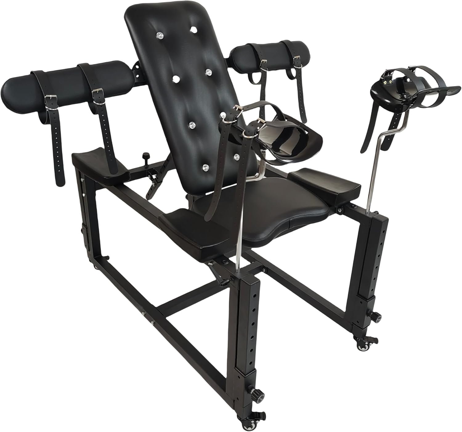 ADJUSTABLE HEAVY DUTY FRAME: Sit up or lean back with this adjustable back rest. Strap your partner in and move them up or down for the perfect angle! Not only is this an adjustable sex bench, its a very heavy duty frame that can handle rough BDSM role playing!