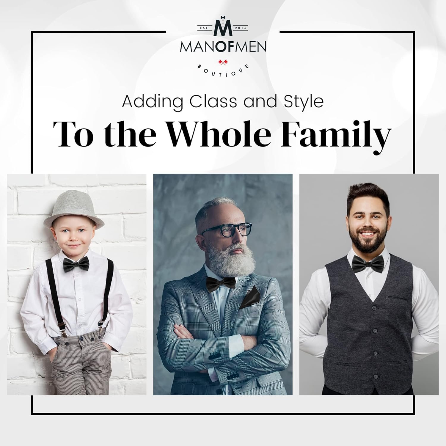 Are you a newbie to the men’s world of formalwear? Or are you contemplating what style to adopt for your wedding day? Well, Worry No More! Man of Men has an exquisite collection of mens bow ties to help you accessorize your wedding attire or make your dinner jacket look more formal. Choose a Color of Your Choice: Our brand presents you with an immense variety of colors for bow ties. From red bow ties for men to royal blue and pink bow ties, we have all the colors available to add a touch of glam to your matching or contrasting outfit. For All Age Groups: Our bow ties for boys are a perfect fit for all age groups due to their adjustable straps. Getting engaged or married? Let your Groomsmen twin with matching black or navy blue bow ties for men for a perfect friendly evening. Rock All Your Parties and Occasions: Our pre tied bow ties are great for any formal occasion including weddings, celebrations, musical nights, or any other formal ceremony. Going for a business dinner? Put on a tuxedo bow tie with a dinner jacket, and voila! You are the most handsome man around. Let Man of Men add uniqueness with a touch of sophistication and elegance to your formalwear. Wear a bowtie of your choice and be the center of attention at any party.