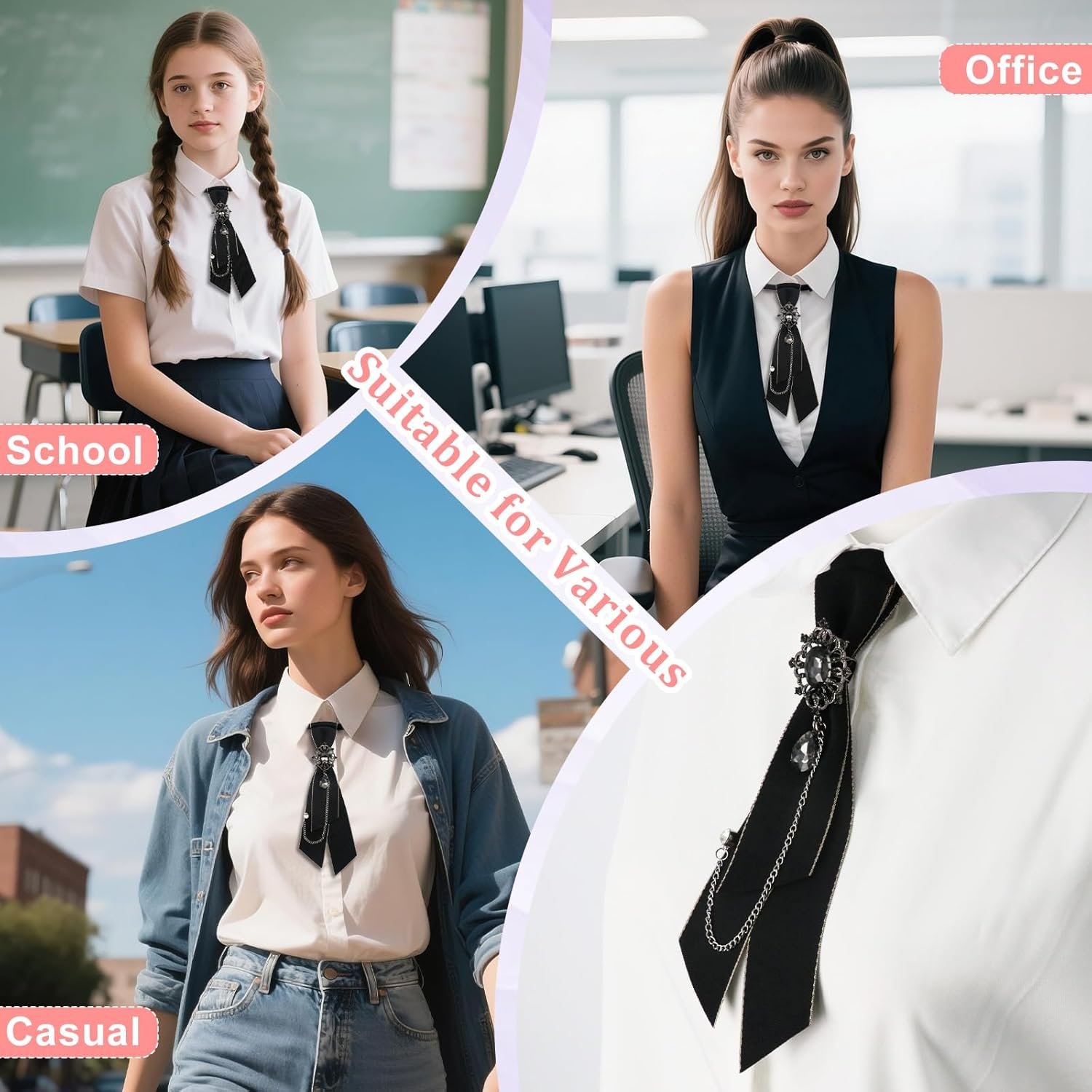 Bow Tie for Women Girls Adjustable Clip On Womens Neck Bowtie with Rhinestone for School Shirt Date Casual Date