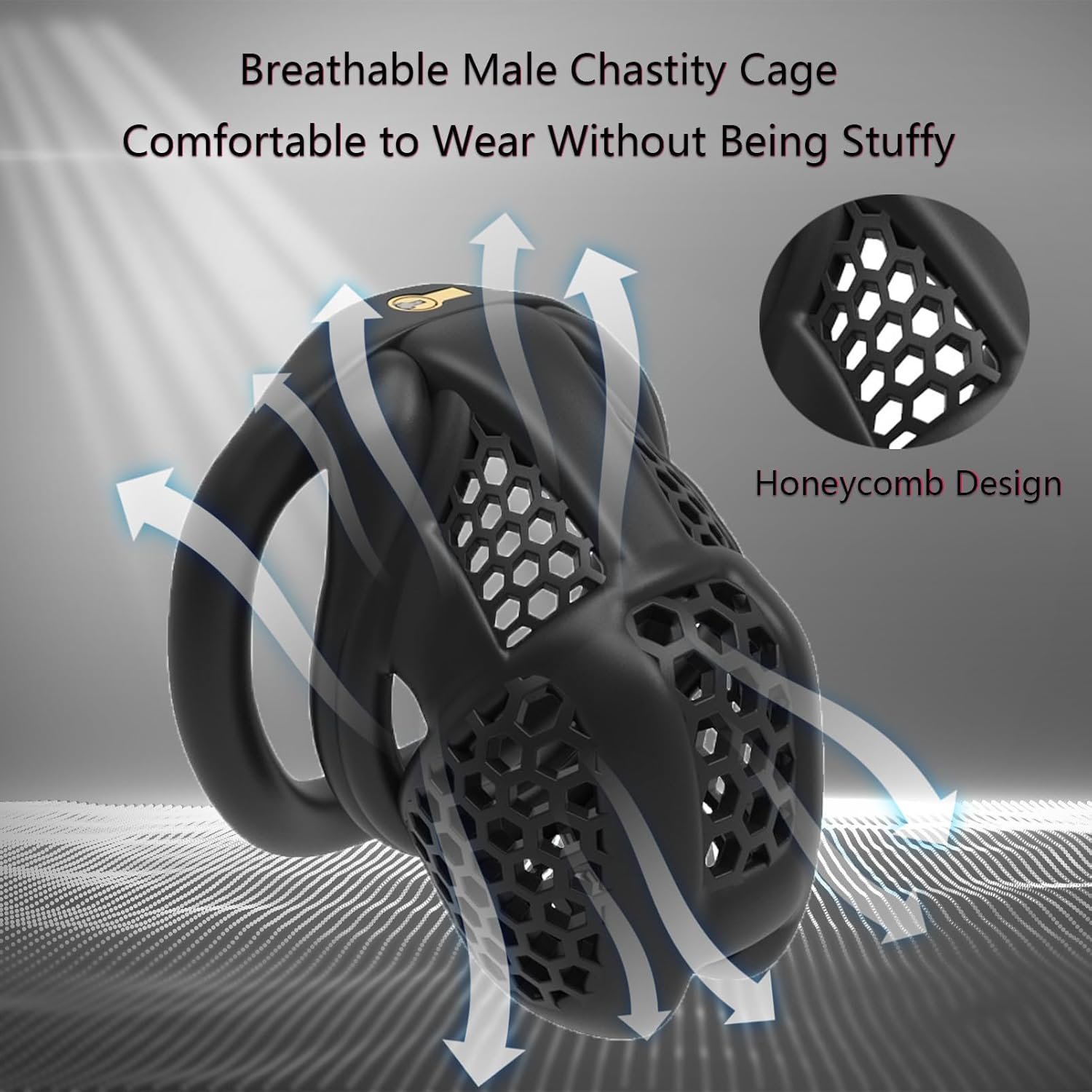 Honeycomb Design:Our chastity cage has many small holes, the appearance is similar to a honeycomb shape, highly breathable, ensuring air circulation inside the cage, safe and hygienic, the chastity cage is ergonomically designed.