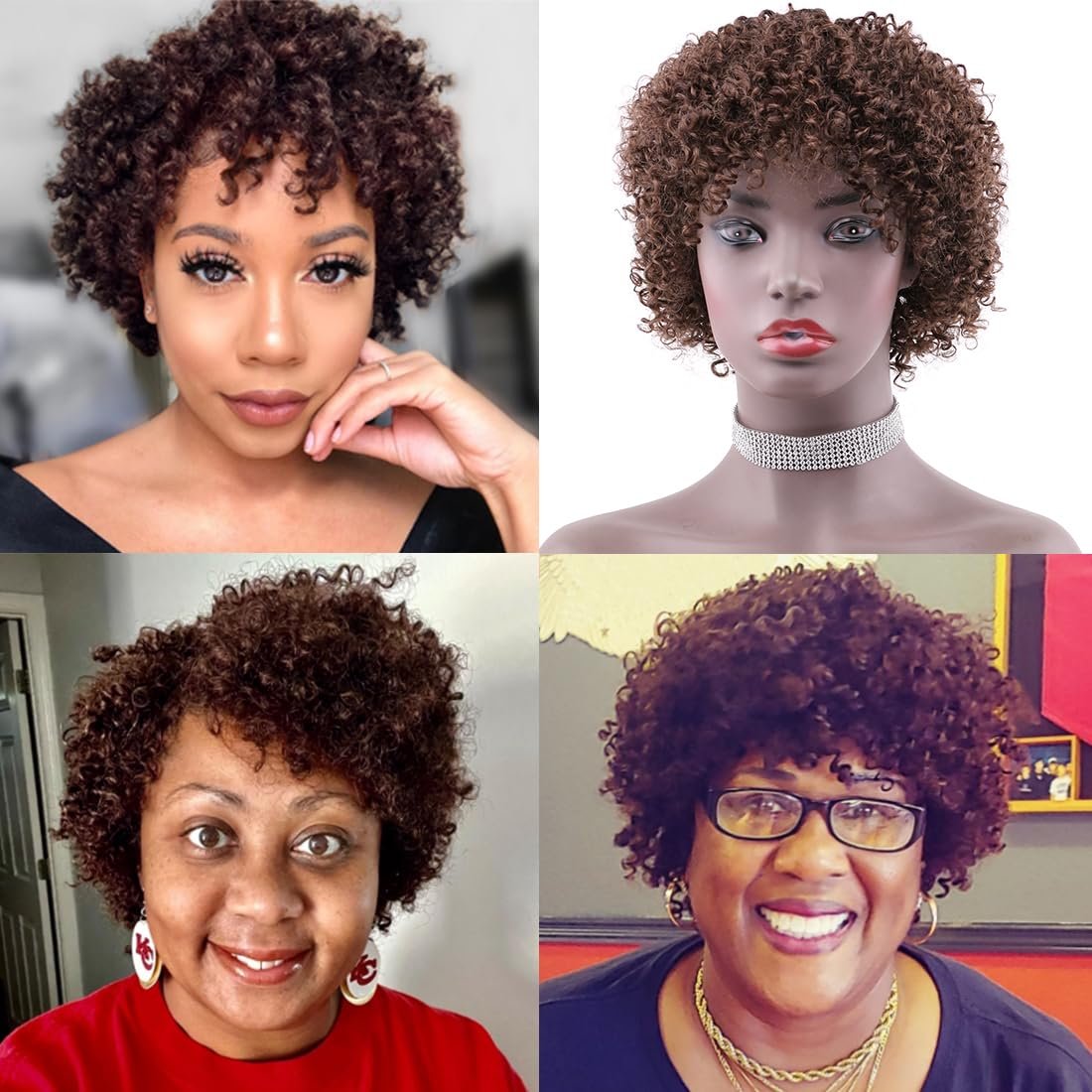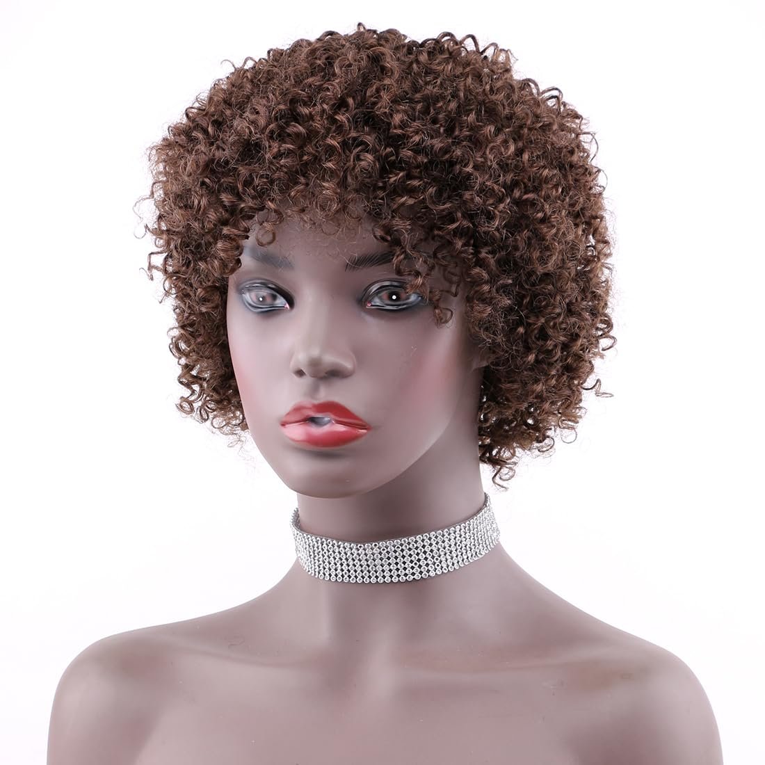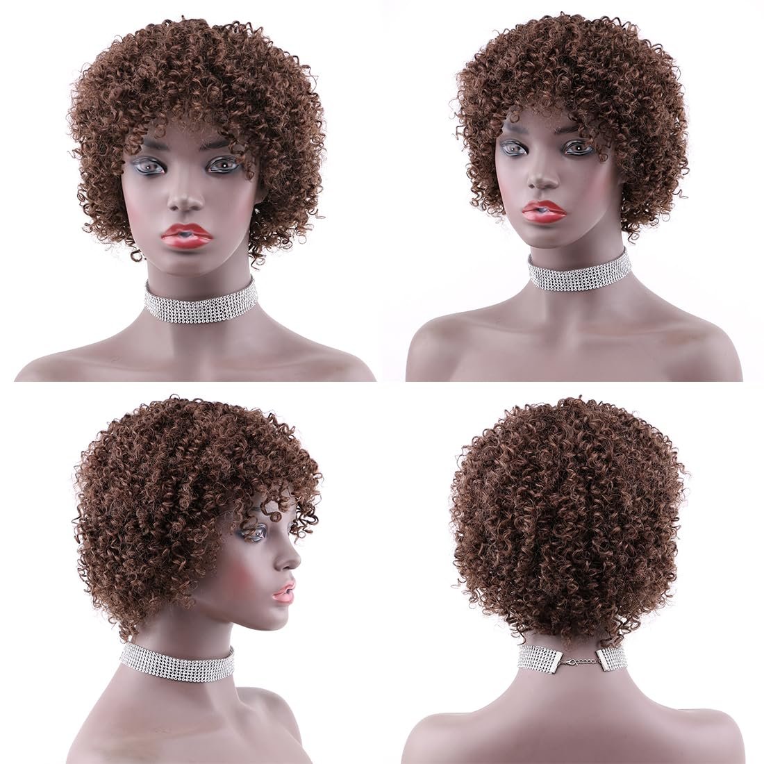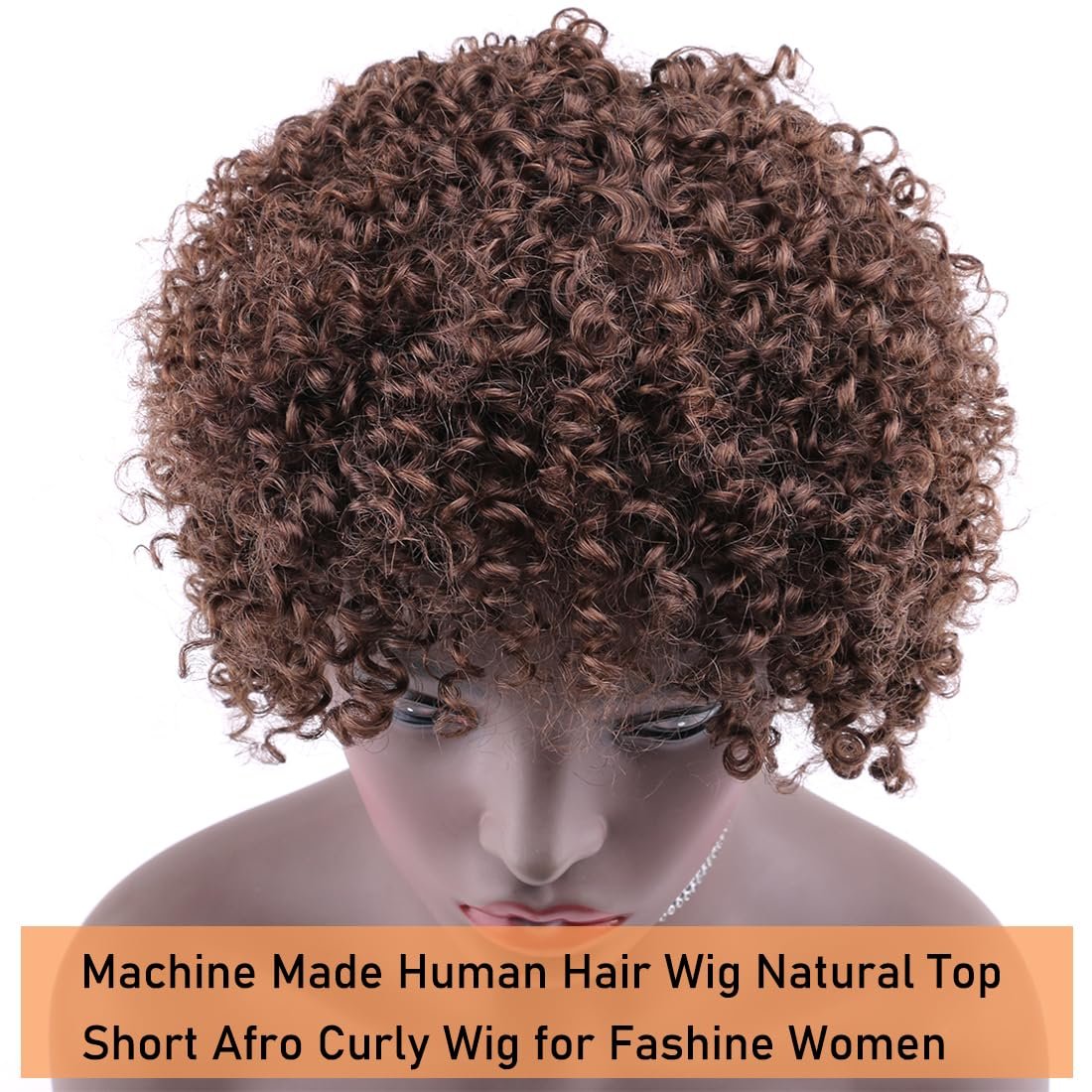 Brown Color Afro Kinky Curly Short Curly Human Hair Wigs with Bangs Glueless Brazilian Virgin Hair Wigs for Black Women(4#)