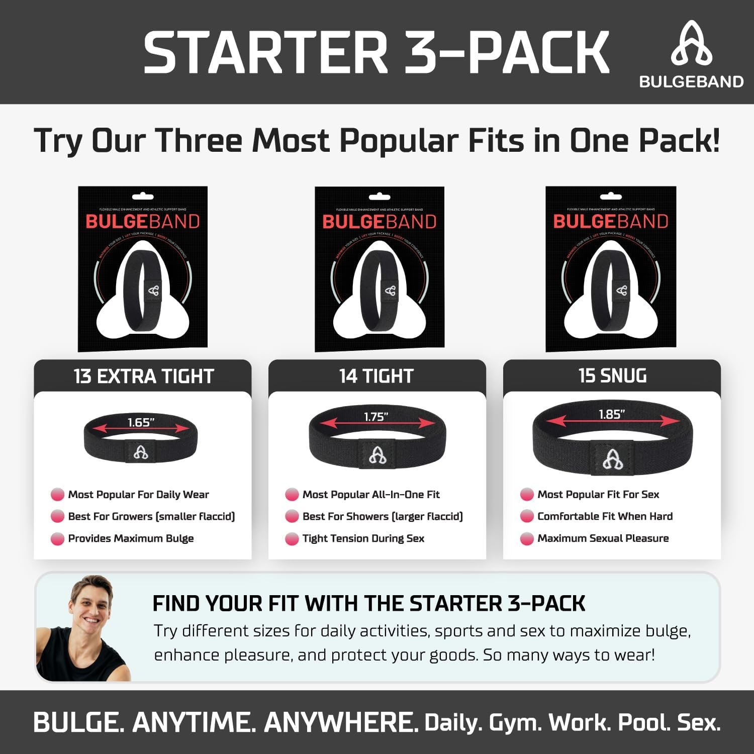 BULGEBAND – Flexible Cock Ring for Male Sex Toy, Realistic Adult Male Sex Toys for Men – Nylon Fabric Penis Rings (Starter, 3 Pack)