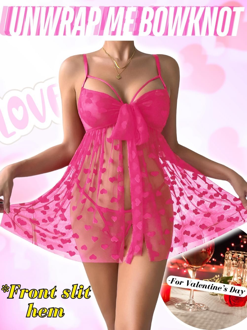 Christmas Lingerie For Women Sexy Gift, Unwrap Me Bow Heart Flowy Babydoll Valentines, Sheer Mesh Sleepwear Exotic
