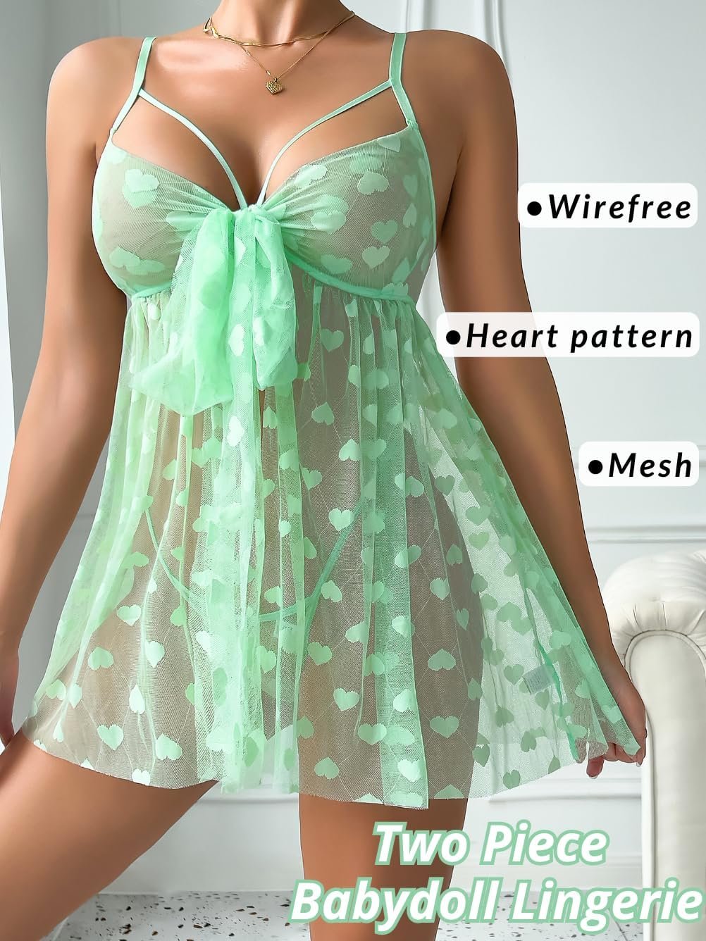 Christmas Lingerie For Women Sexy Gift, Unwrap Me Bow Heart Flowy Babydoll Valentines, Sheer Mesh Sleepwear Exotic