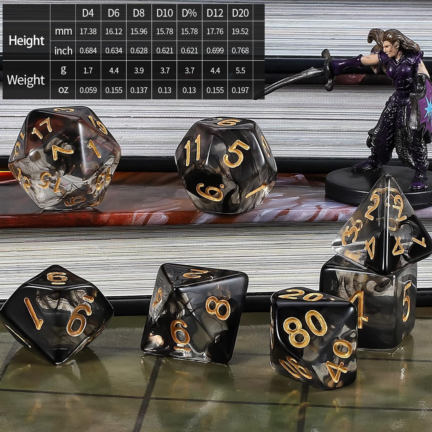 🎲 Material: these D&D dices are made from Eco-friendly acrylic material, waterproof and oxidation-proof, durable and hardwearing.