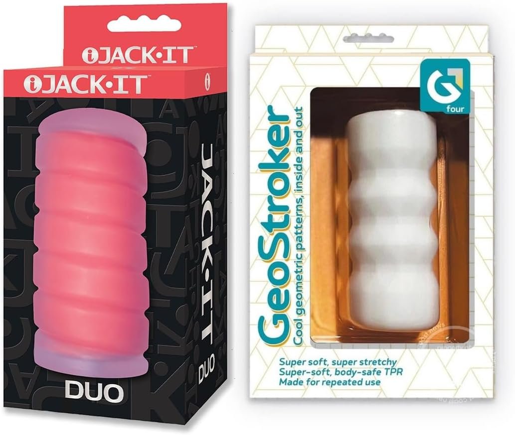 Couples Sex Toy Bundle of Jack-It Duo, Cherry and Icon Brands GeoStroker 4 Stroker – White