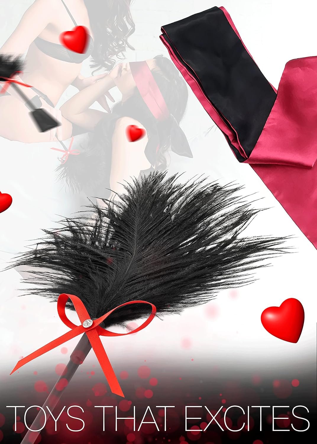 (Soft and Comfortable) The satin eye mask and whip with feather are for soft and gentle touch.