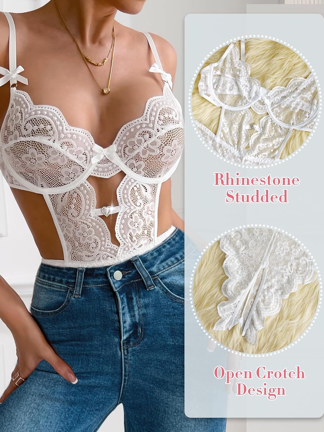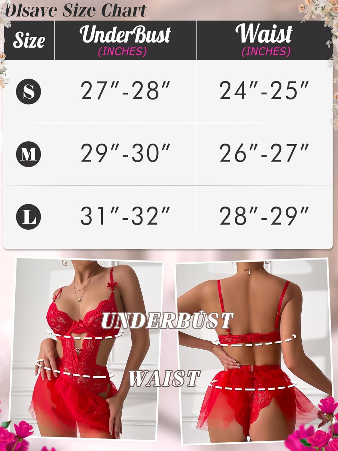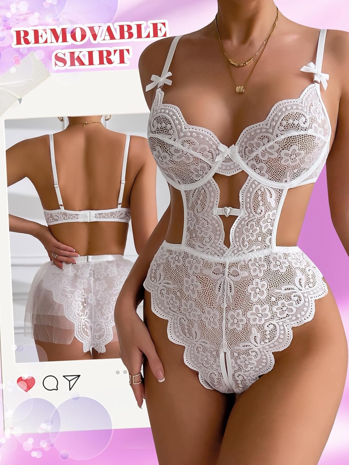 Dlsave Women Sexy Lingerie Set Lace Teddy Lingerie Detachable Mini Skirt Sets