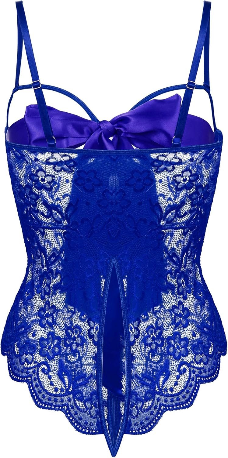 Donnalla Women Sexy Bodysuit Self Knot Front Floral Lace Teddy One Piece Babydoll Naughty Lingerie