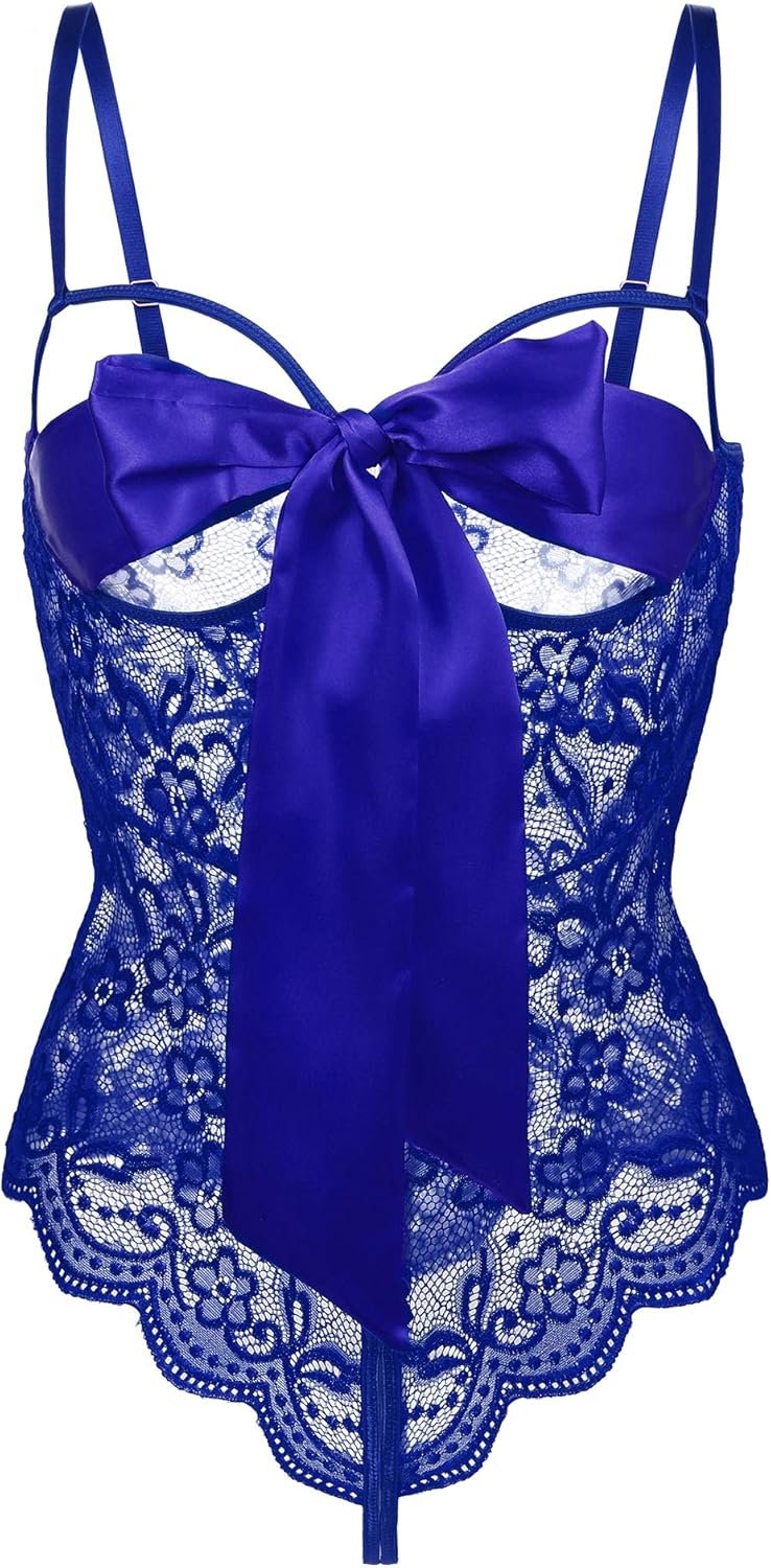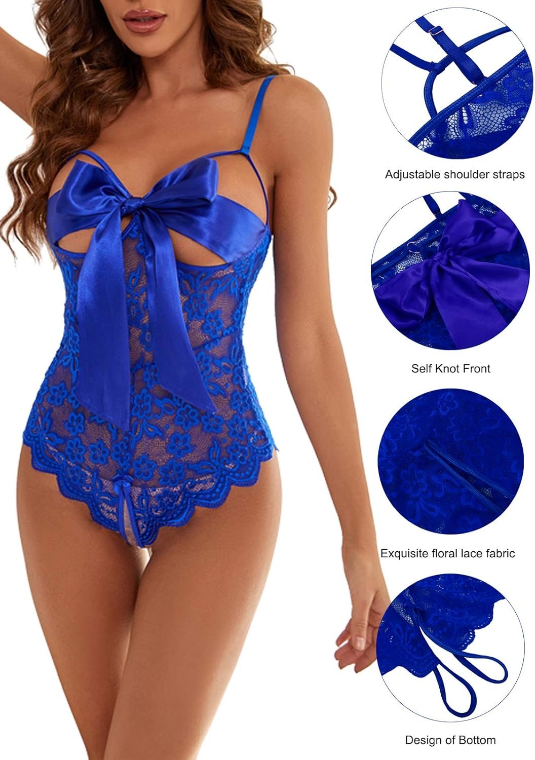 Donnalla Women Sexy Bodysuit Self Knot Front Floral Lace Teddy One Piece Babydoll Naughty Lingerie
