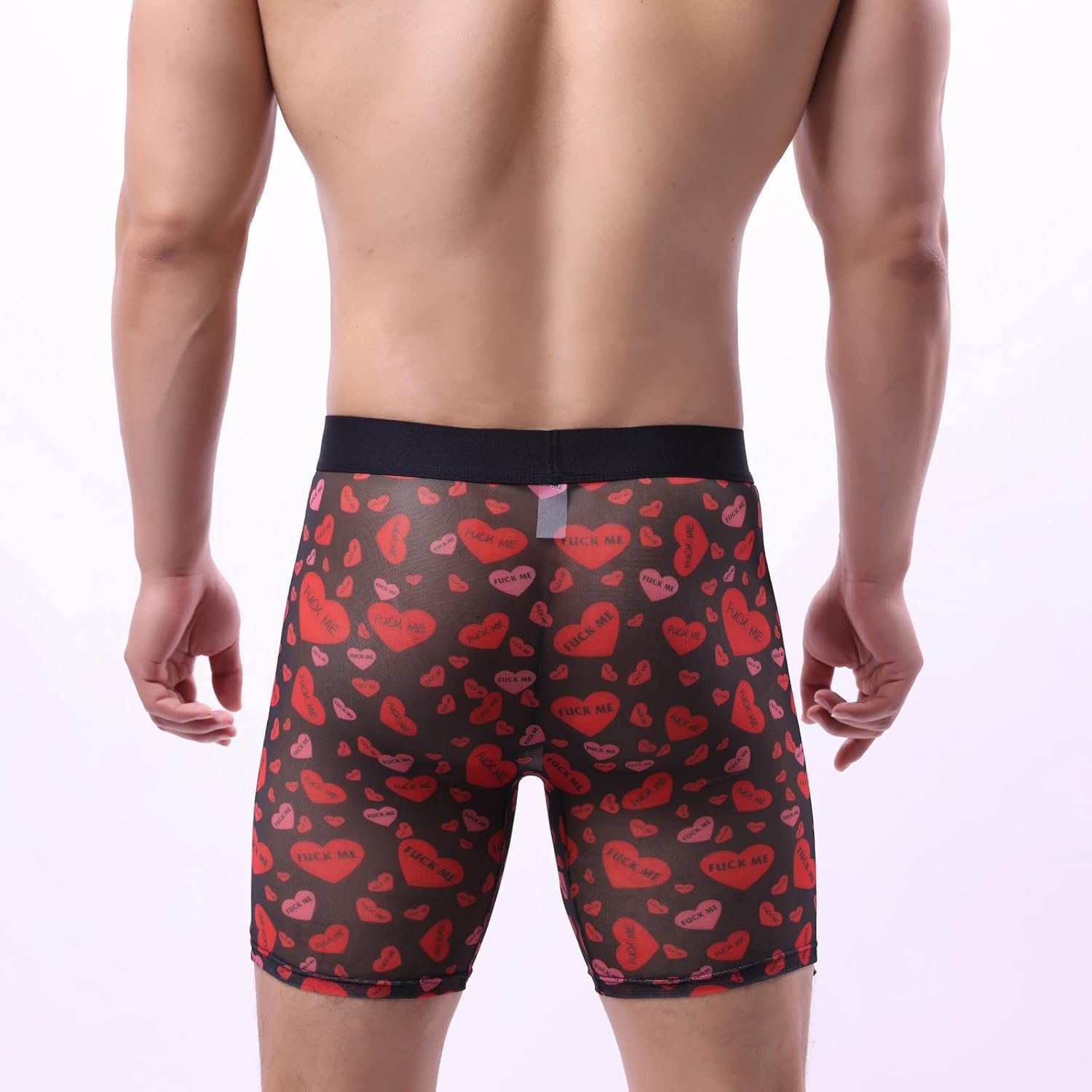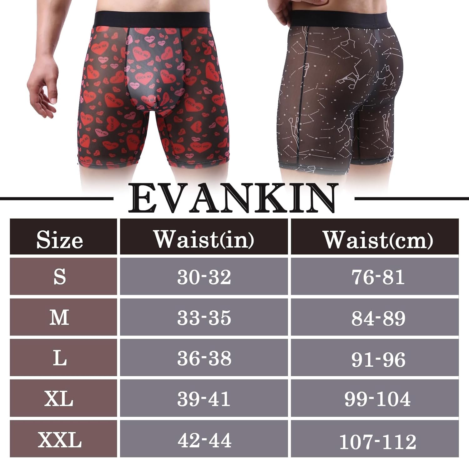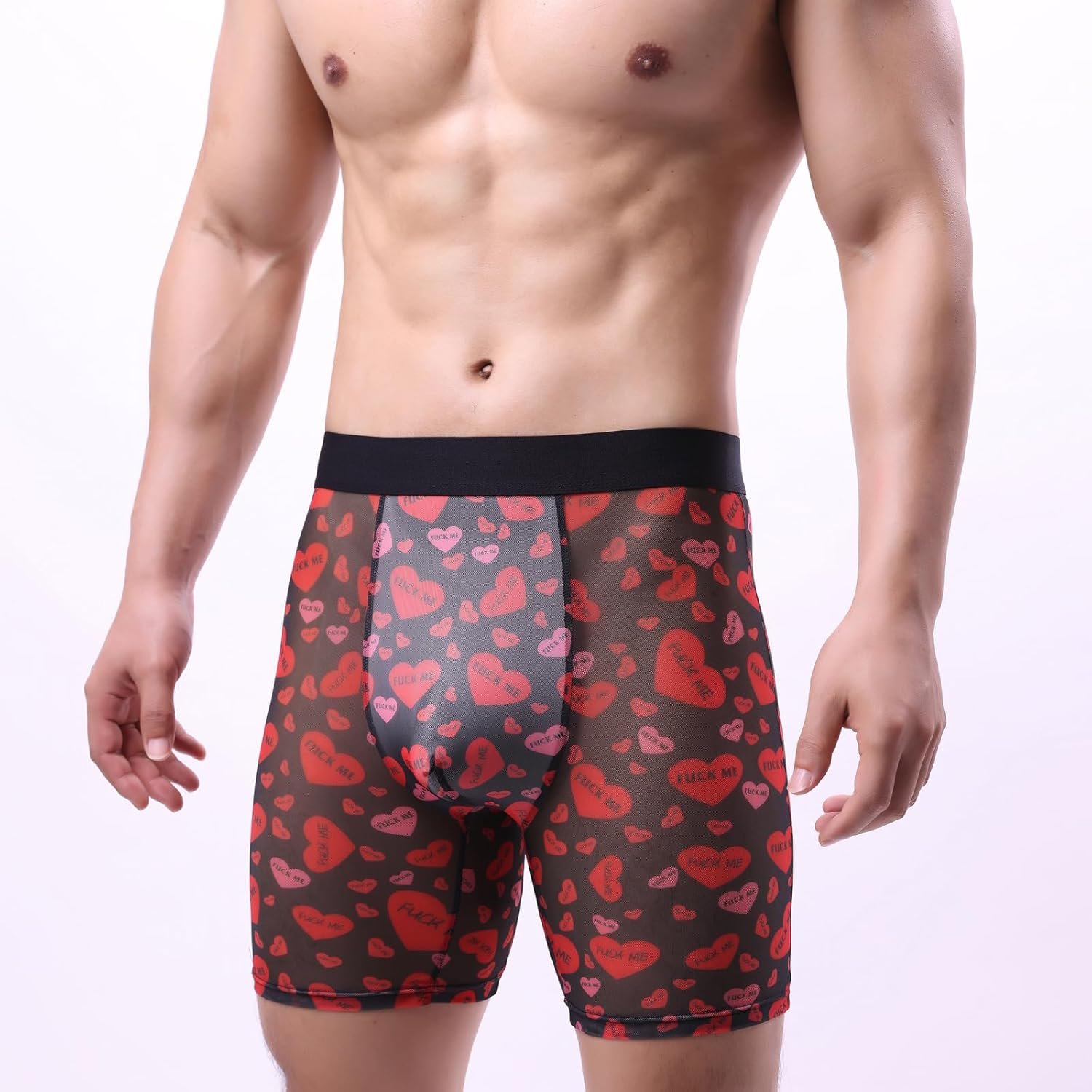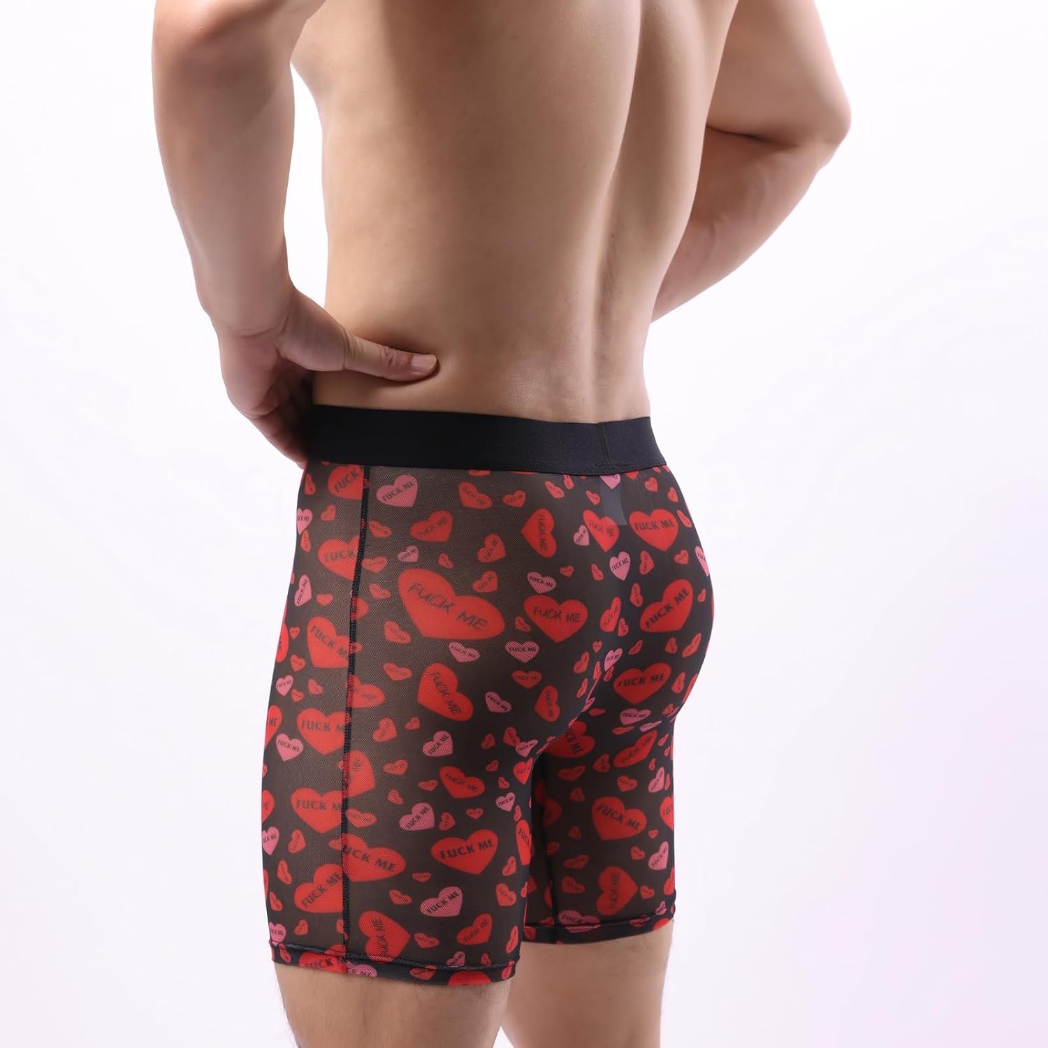 Evankin Mens Valentines Boxer Briefs, Funny Novelty Underwear, Long Leg Breathable Trunks Lingerie Underpants Shorts
