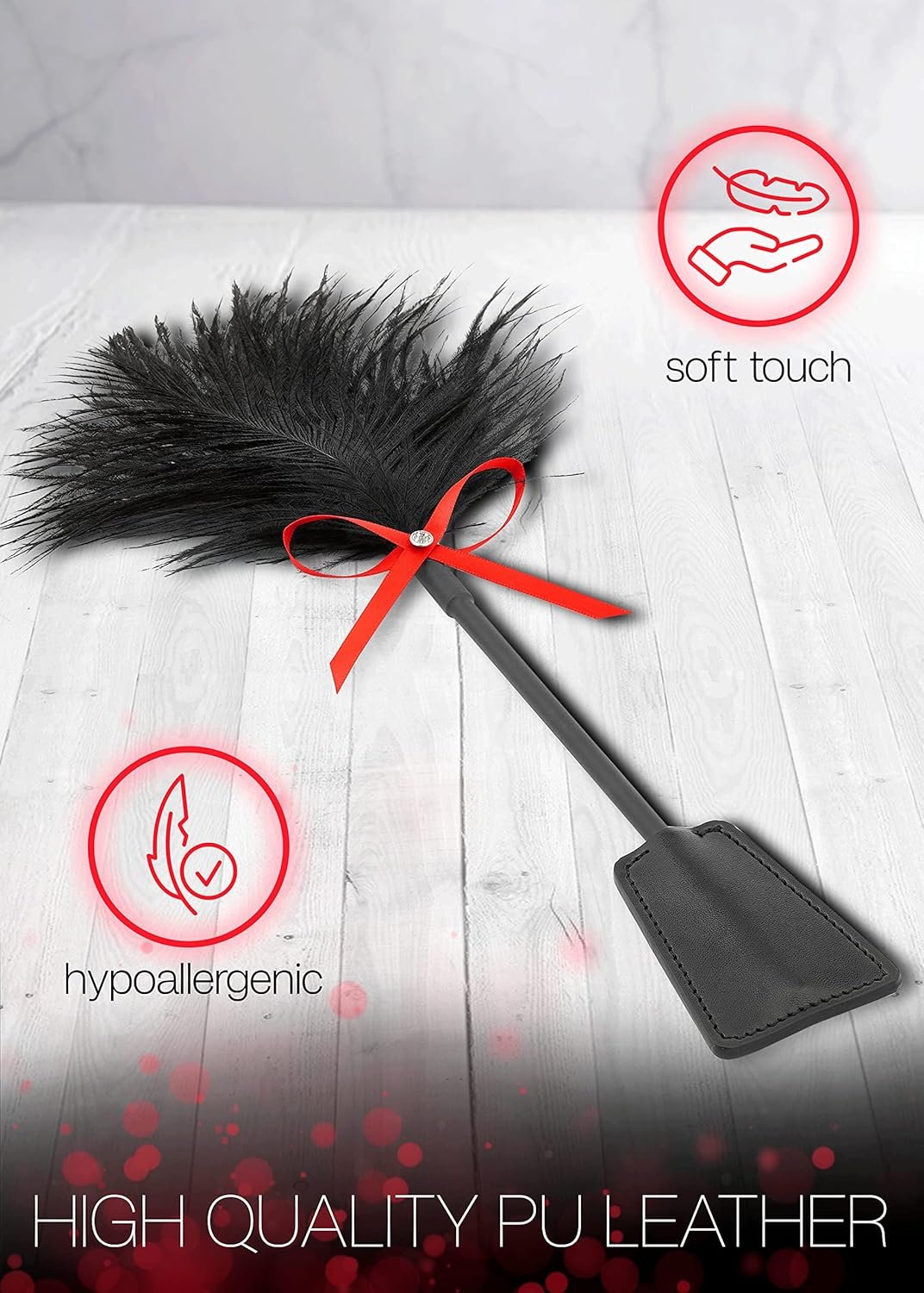 The Tickler Feather and Blindfold Mask Kit is the perfect solution for couples seeking to explore new sensory experiences. It includes a 15″ French Tickler, a 59″ Satin Blindfold. This set guarantees quality and durability. Its luxurious, soft materials provide a comfortable and exciting experience. The high-quality satin and feathers used ensure longevity, making it suitable for regular use and perfect for couples interested in sensory play. The Kit is easy to use and designed to vary up your intimate moments. This sensory delight kit, suitable for adults, comes in discreet packaging. Ideal for adventurous couples.