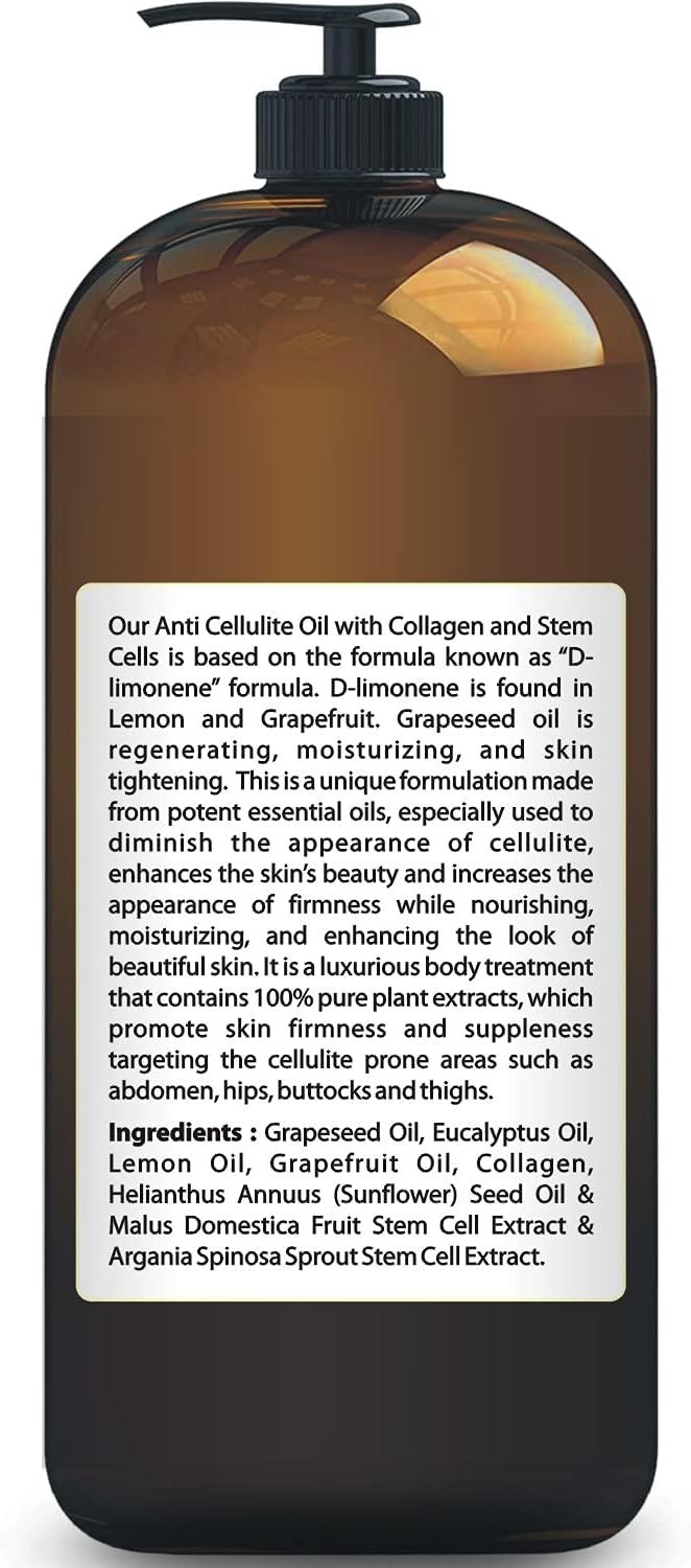 First Botany, Anti-Cellulite Massage Oil Infused with Collagen & Stem Cells – Natural Cellulite & Stretch Mark Treatment for Men & Women – 8 oz