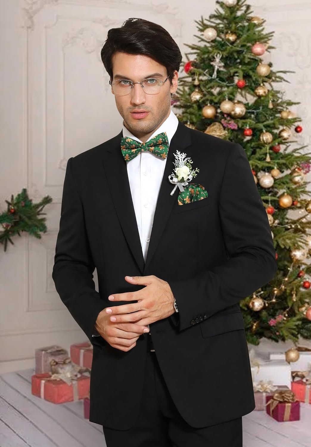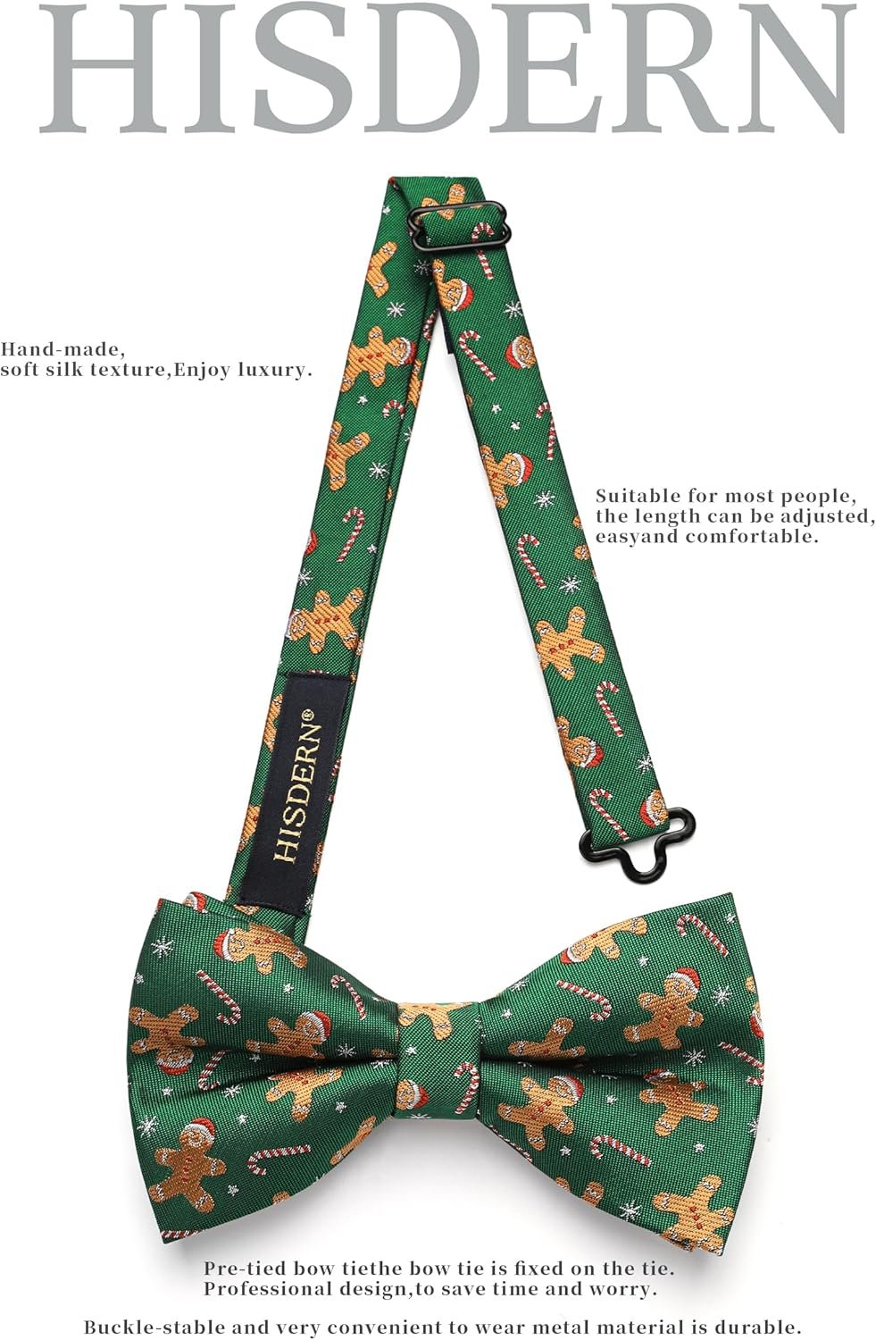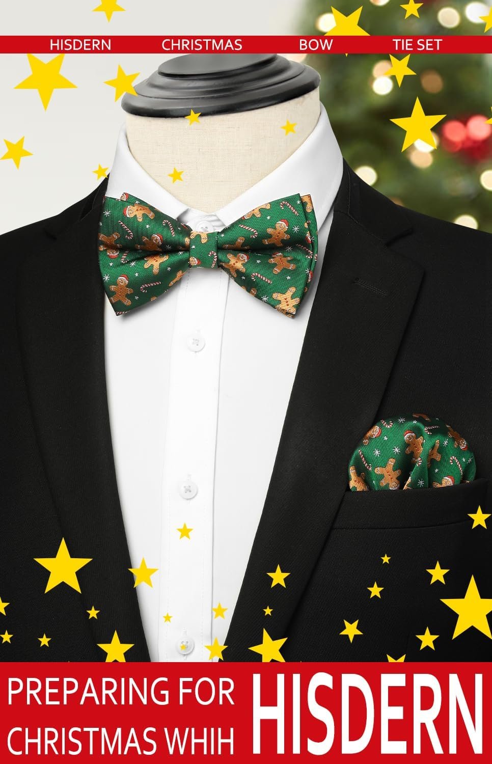 HISDERN Christmas Mens Bow Ties Set Holiday Festival Bow Tie and Pocket Square Set with Gift Box Bow Ties for Men Pretied