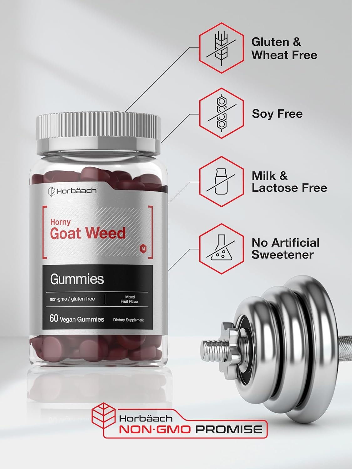 Go bolder than ever before with Horbaach Horny Goat Weed! These bite-sized, chewable gummies not only offer 600 mg of Horny Goat Weed and 400 mg of Maca per serving, but they also taste great! Our vegan gummies are made with mixed fruit flavor plus no artificial sweetener, bringing you next level herbal support to power your routine.