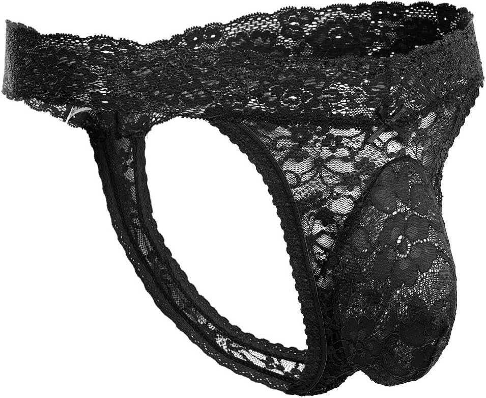IBAKOM Men’s Lace Frilly Sissy Thong Panties Sheer Mesh Bikini Briefs T-back G-string Underwear