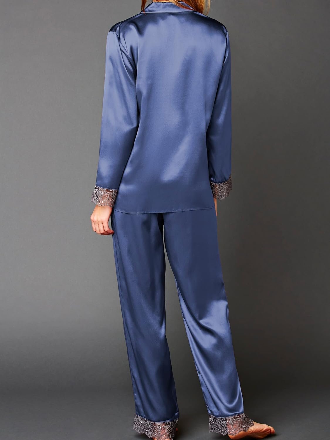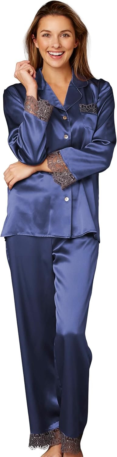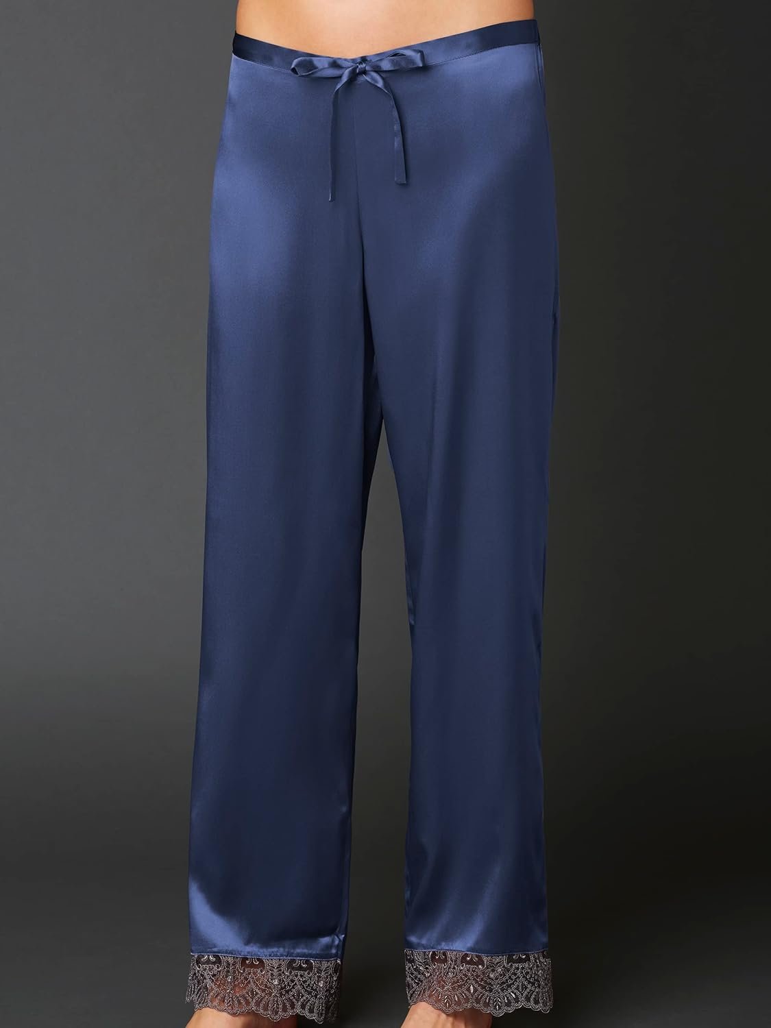 Julianna Rae 100% Silk Pajama, Lace Trim, Drawstring Waist, Relaxed Fit, Sleep-In