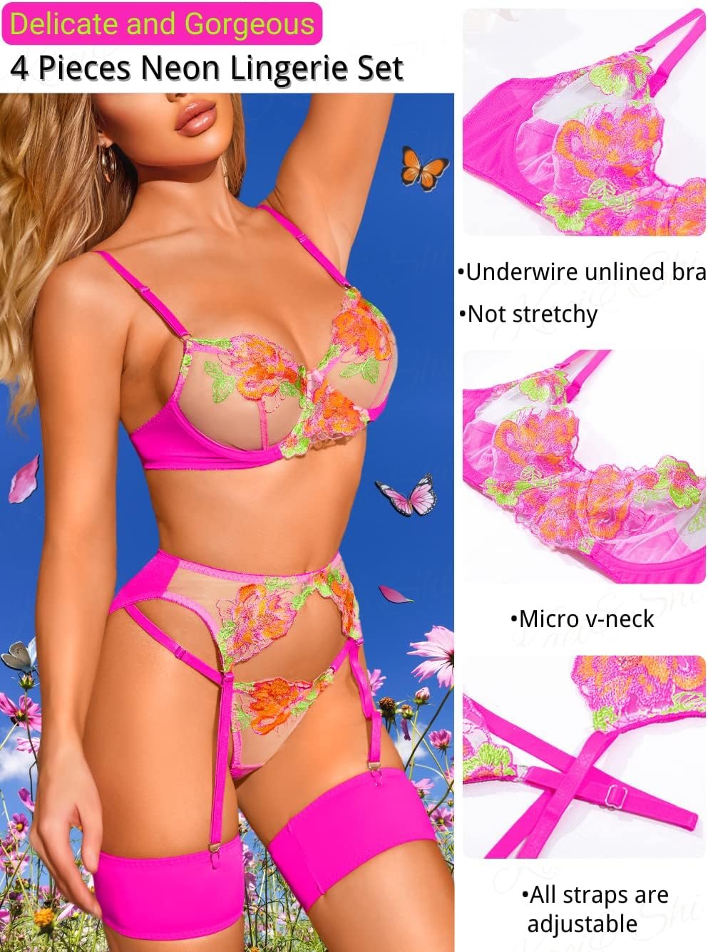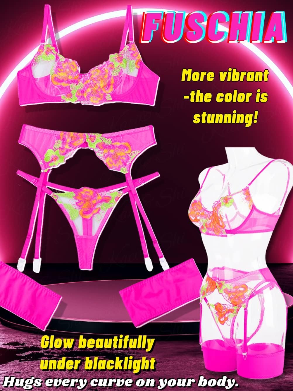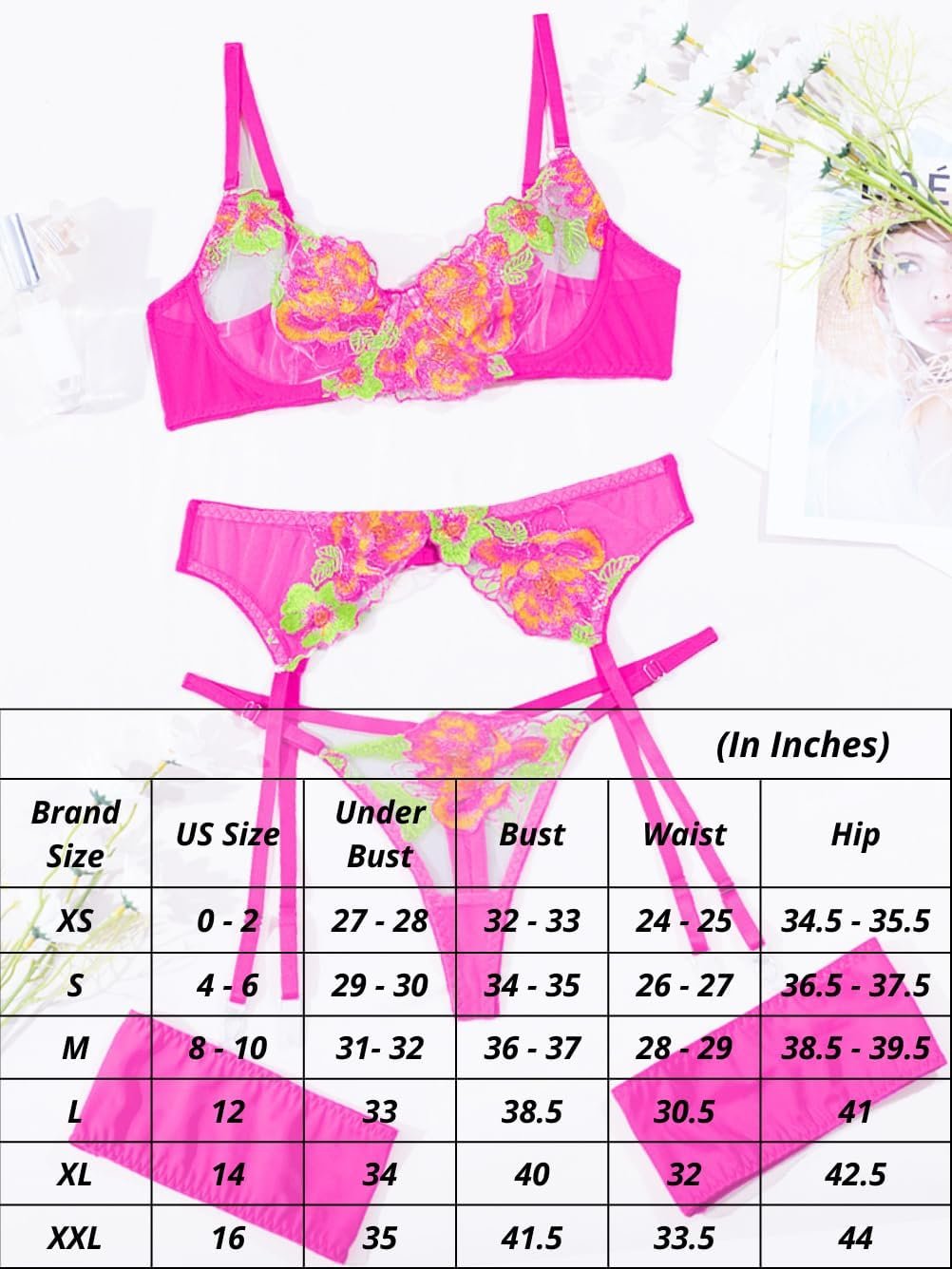 Kaei&Shi Floral Embroidered Garter Belt Set,Sheer Lingerie Sets for Women Sexy,Wedding Night Valentines Boudoir Outfits