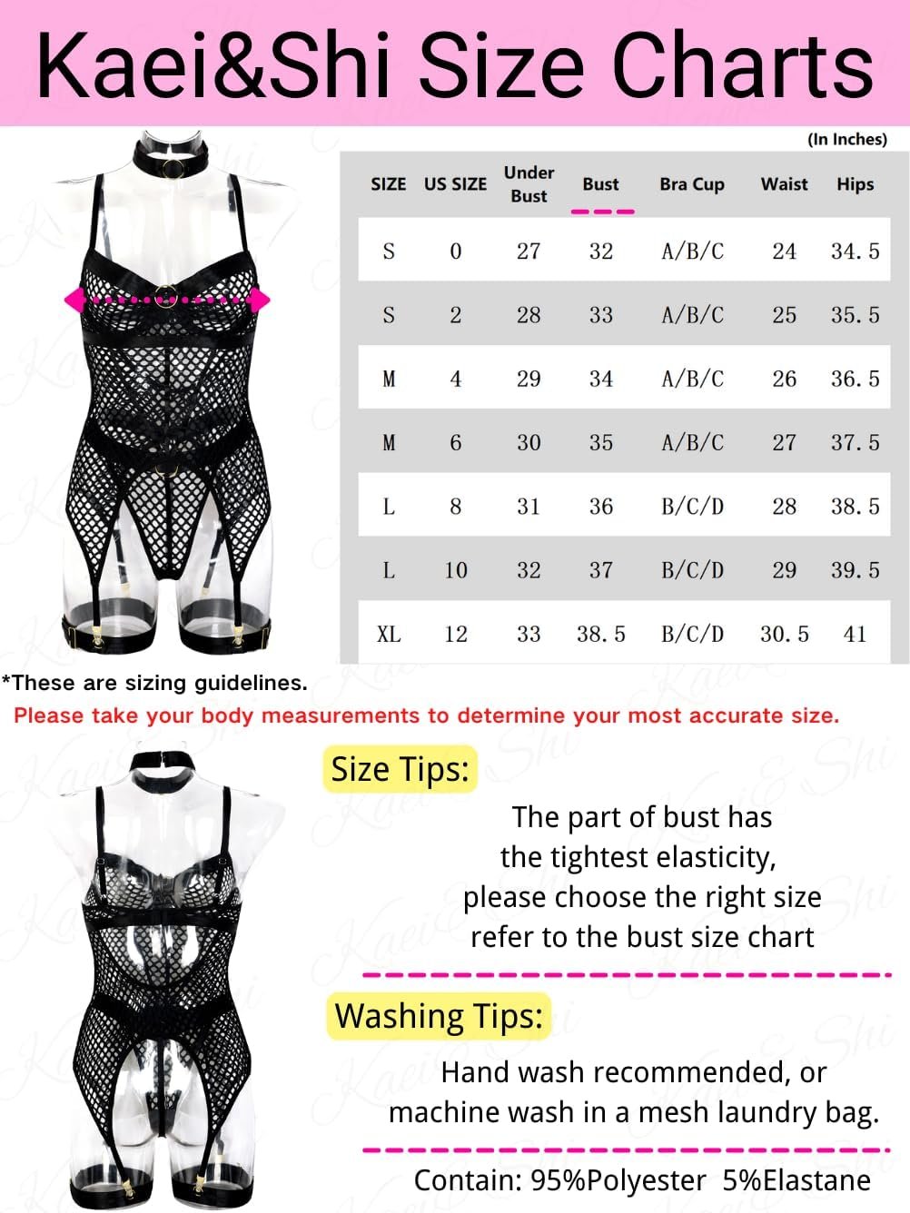 Kaei&Shi Rave Outfits Fishnet, Exotic Strappy Backless, Choker Garter Lingerie