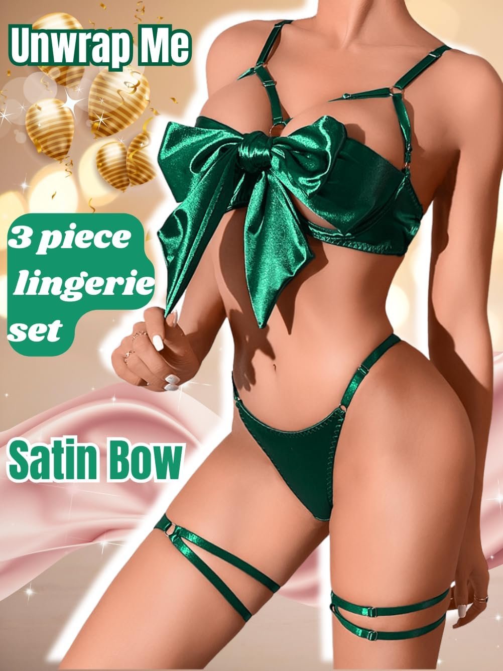Kaei&Shi Satin Bow Lingerie for Women,Strappy Unwrap Present Lingeries,Sexy Bra and Panty Sets Birthday Christmas Valentines