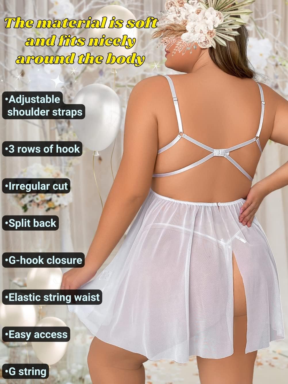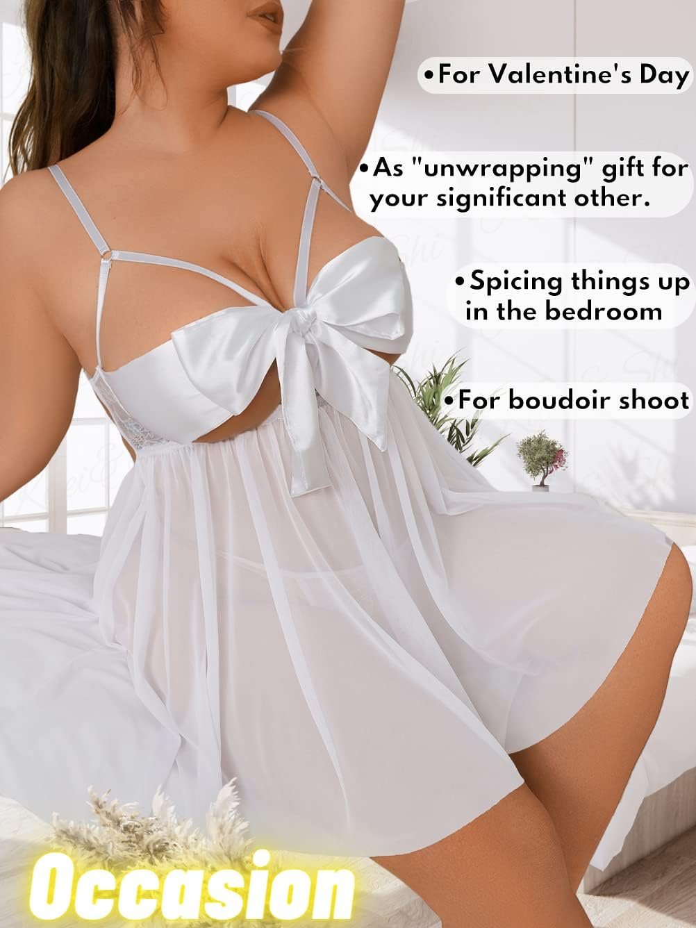 Kaei&Shi Unwrap Me Ribbon, Split Back, Flowy Gifts, 2PC Plus Size Lingerie