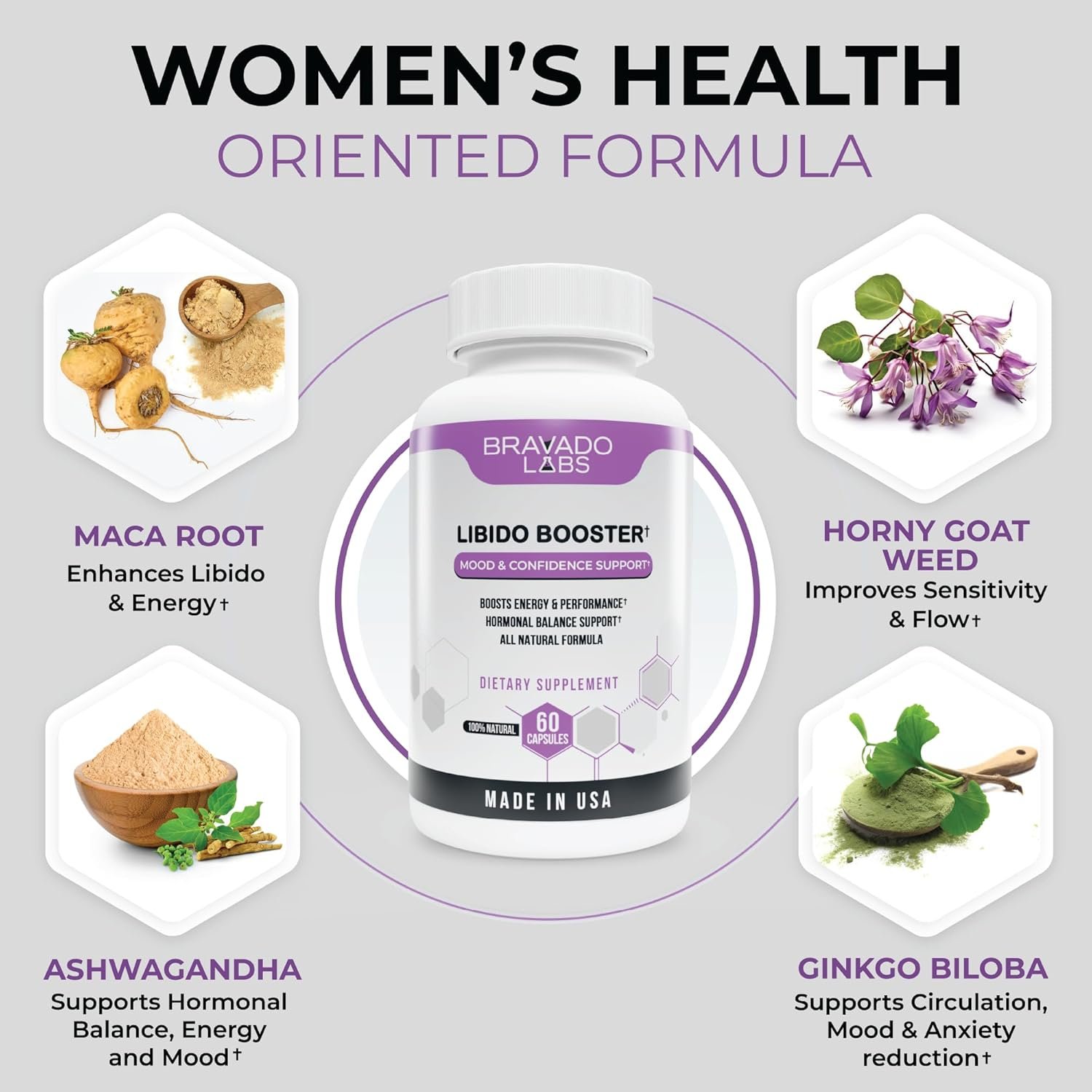 Unrivaled Potency, Purely Natural – Bravado Labs Women’s Libido Booster exemplifies our commitment to all-natural ingredients, ensuring both effectiveness and safety. For renewed vitality and passion, simply take two easy-to-swallow, no aftertaste capsules before your meal. Experience the transformative power of our advanced formula made in the USA, designed to invigorate your well-being and enhance your intimate experiences.