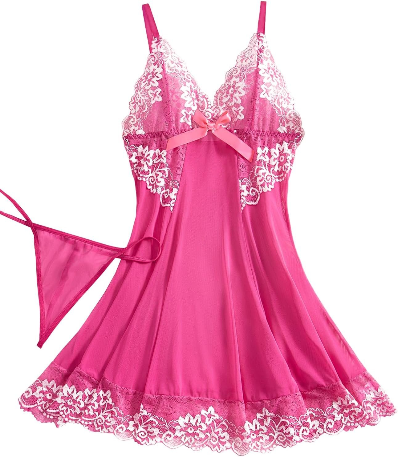 Lilosy Sexy Bow Mesh Lace Floral Sheer Babydoll Lingerie Set