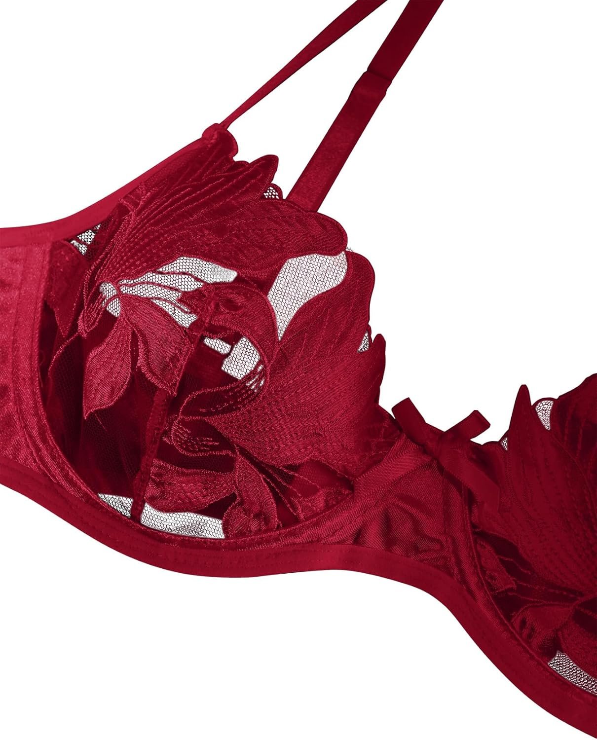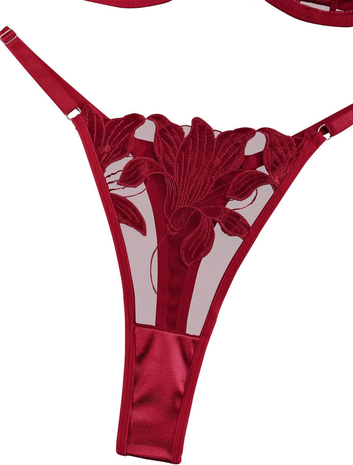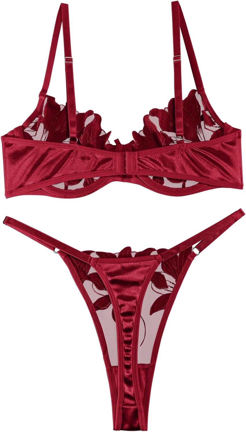 Lilosy Sexy Satin Mesh Floral Sheer Embroidered Underwire Lingerie Set 2 Piece Women