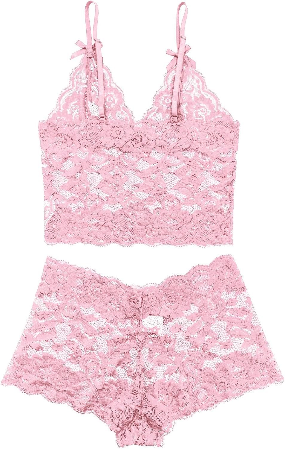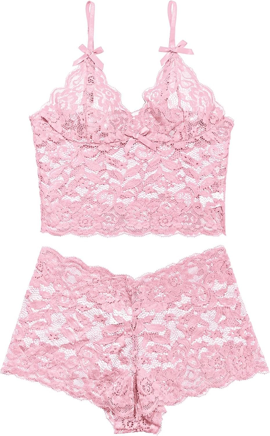 Lilosy Sexy Sheer Floral Lace Pajamas Lingerie Set High Waist Sleepwear Bra and Panty 2 Piece Nightwear