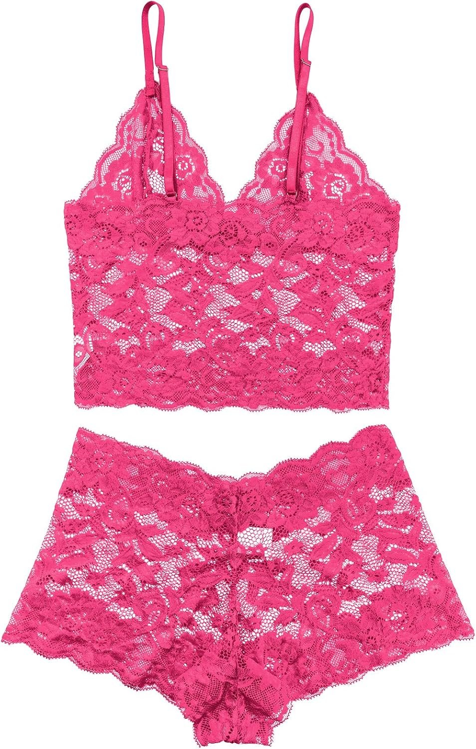 Lilosy Sexy Sheer Floral Lace Pajamas Lingerie Set High Waist Sleepwear Bra and Panty 2 Piece Nightwear