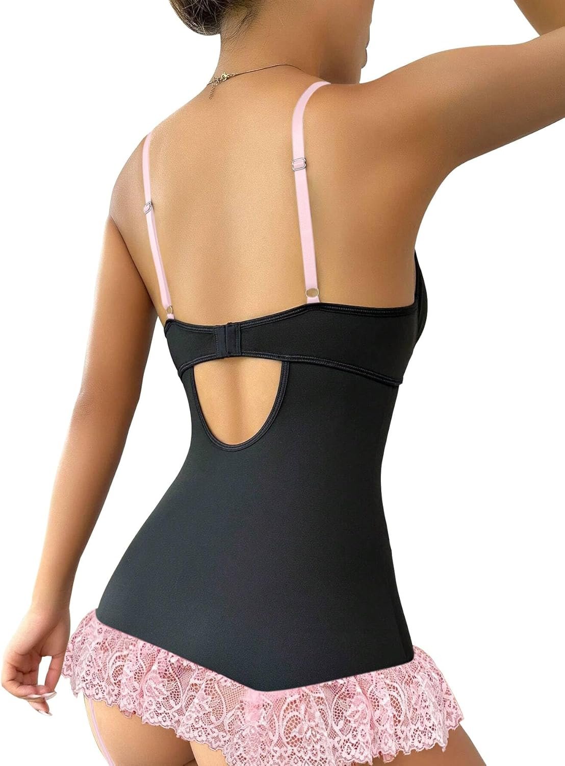 Lilosy Sexy Stocking Garter Belt Bows Floral Lace Babydoll Corset Push Up Teddy Lingerie Set with Panty