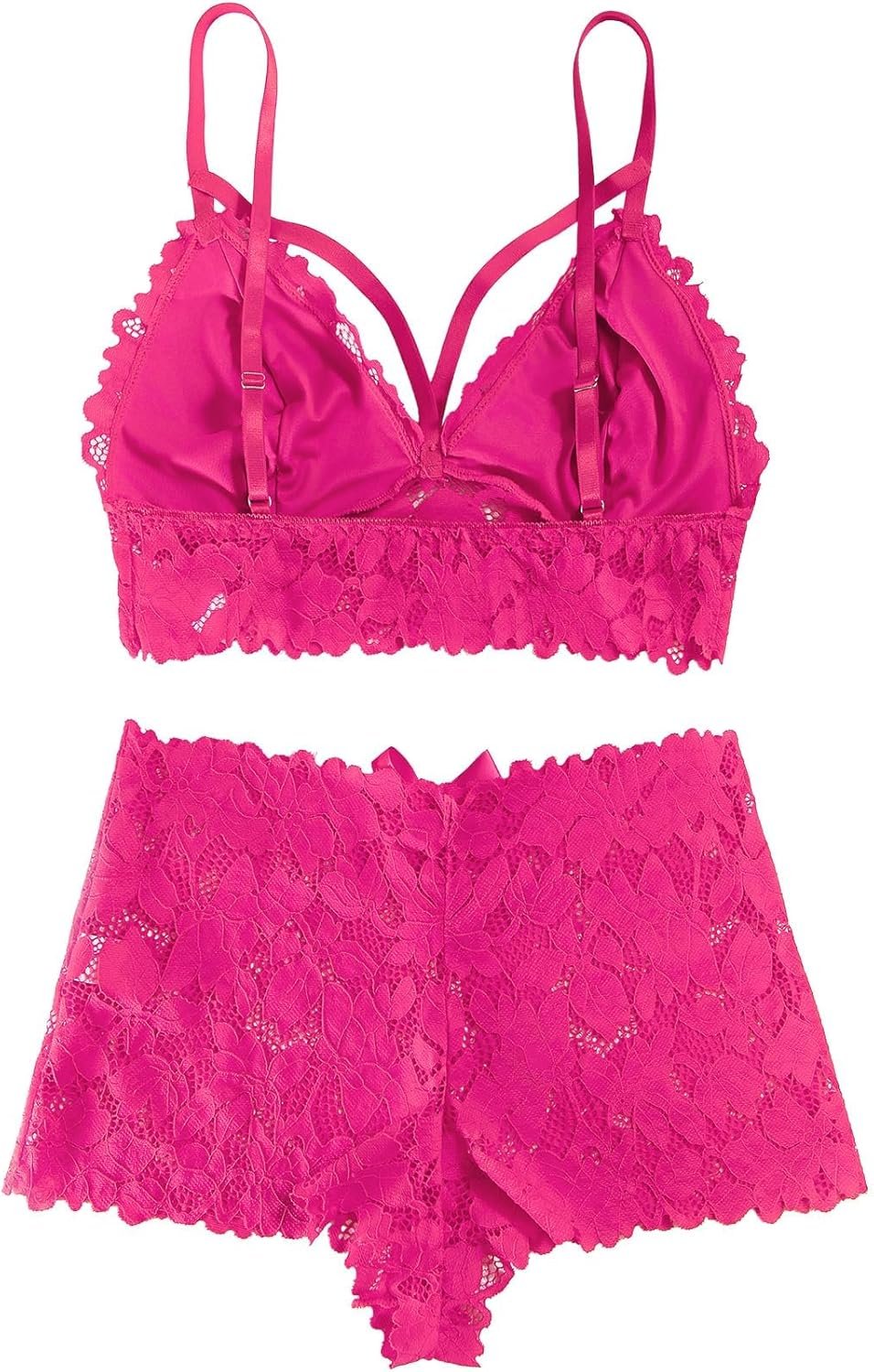 Lilosy Sexy Strappy High Waist Floral Lace Pajamas Lingerie Set Outfits