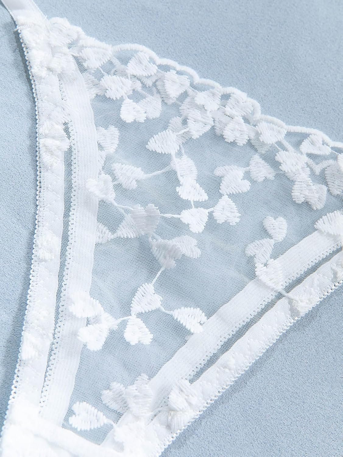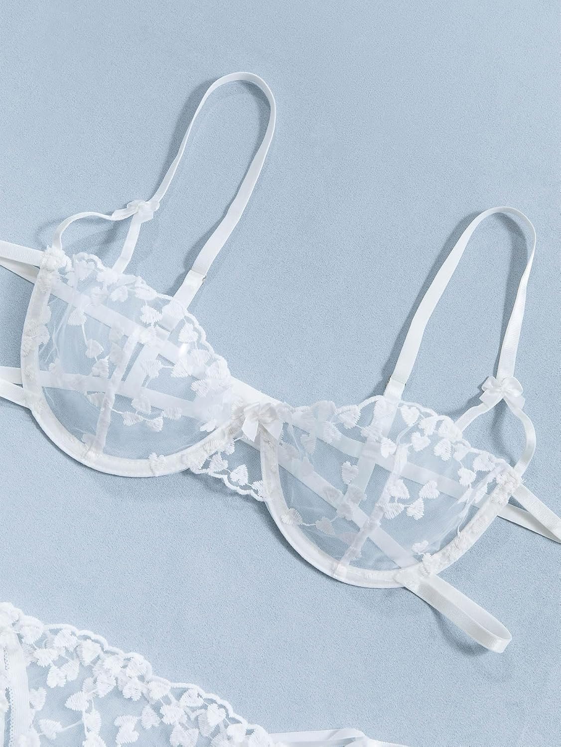 Lilosy Sexy Tie Side Cute Underwire Push Up Strappy Embroidered Mesh Sheer Lingerie Set