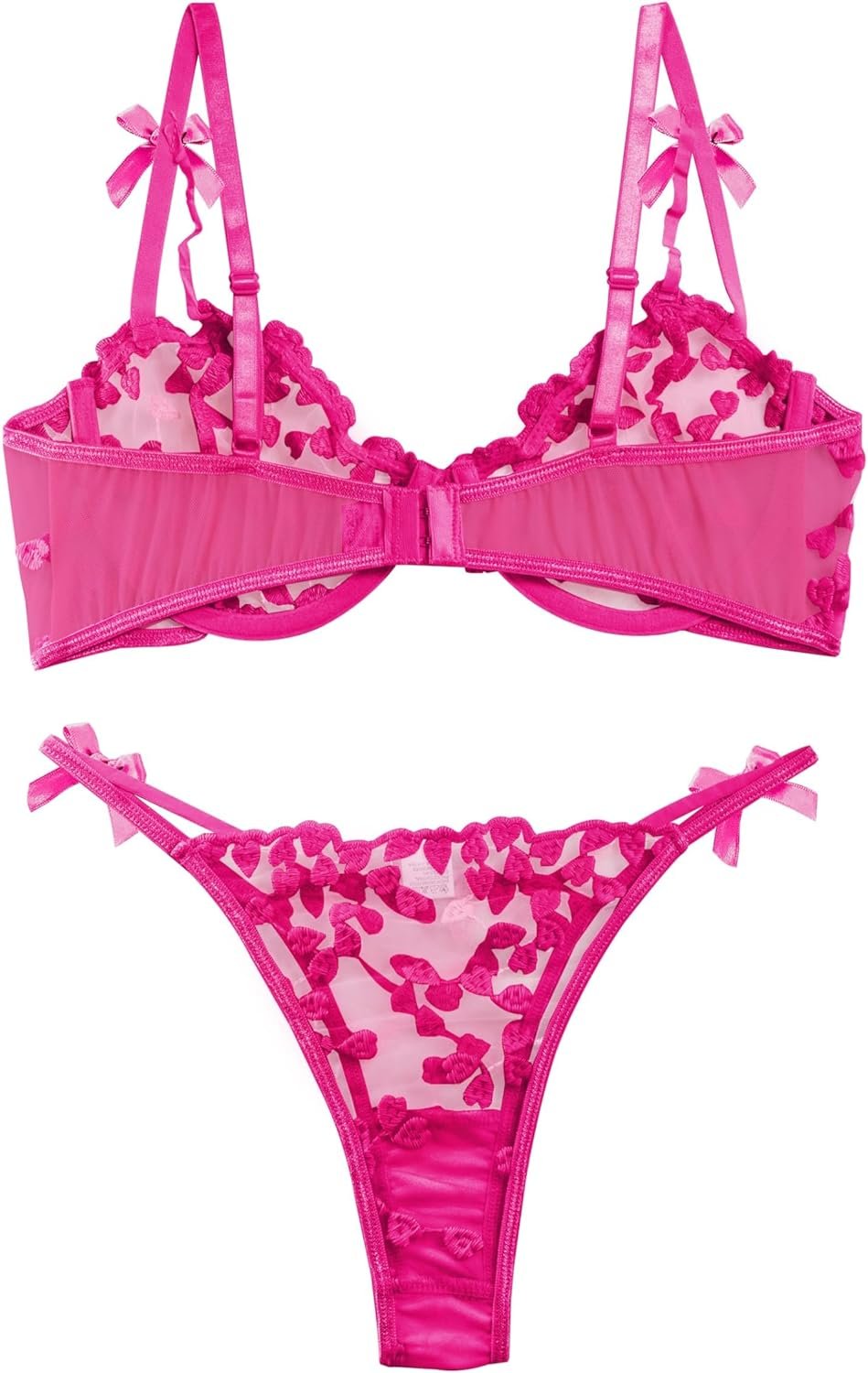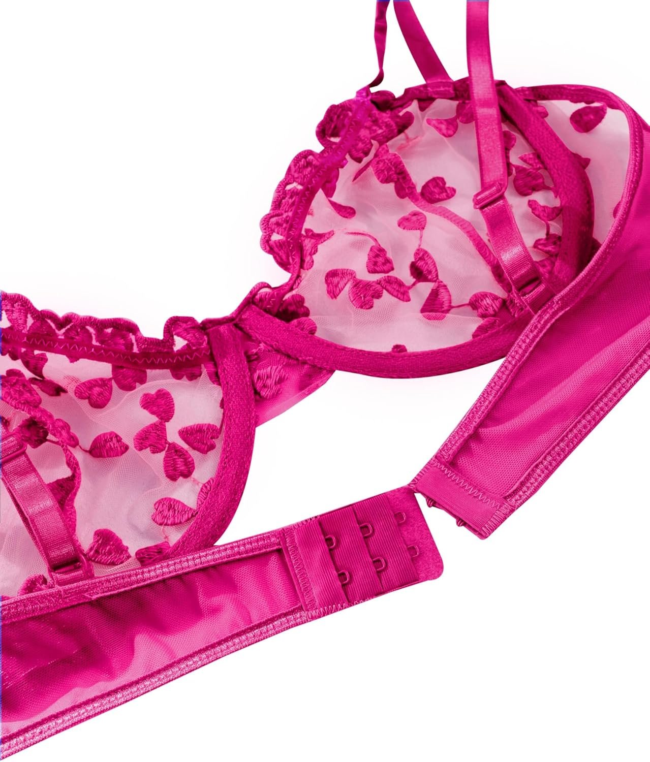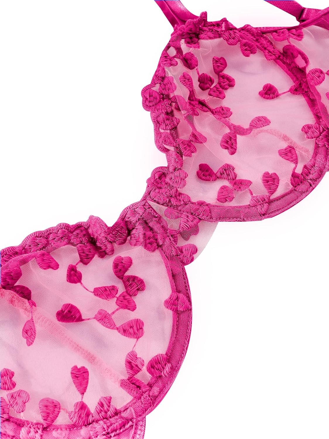 Lilosy Sexy Underwire Cute Push Up Strappy Embroidered Mesh Sheer Lingerie Set See Through Panty Bra
