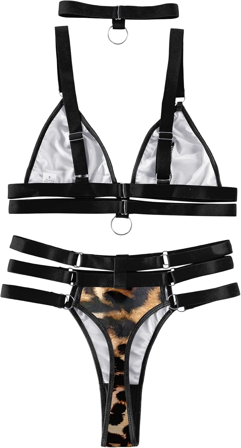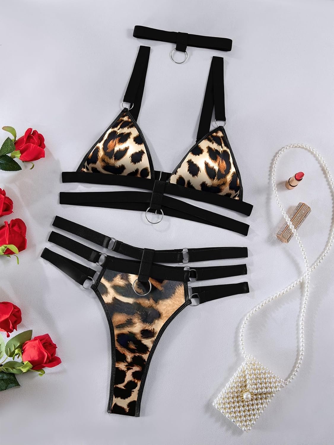Lilosy Sexy Wireless Choker O Ring Linked Strappy Harness Lingerie Set Outfits 3 Piece