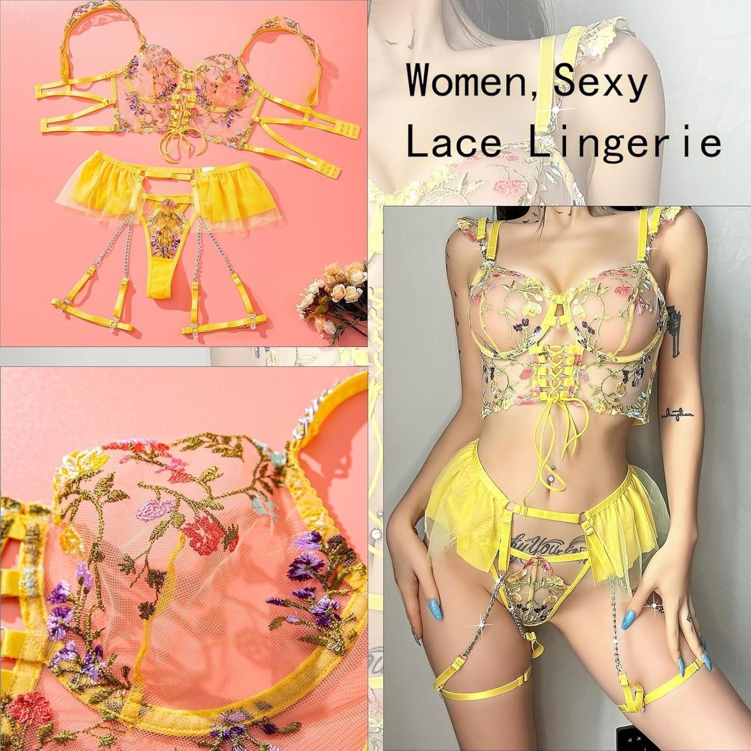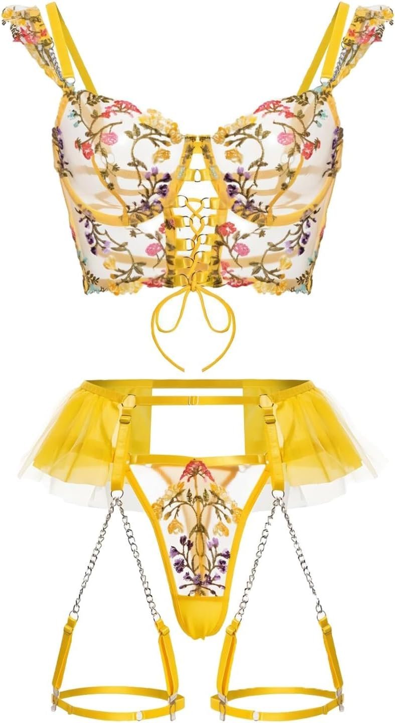 Lingerie Set for Women Sexy Flower Embroidery Lace Lingerie Set
