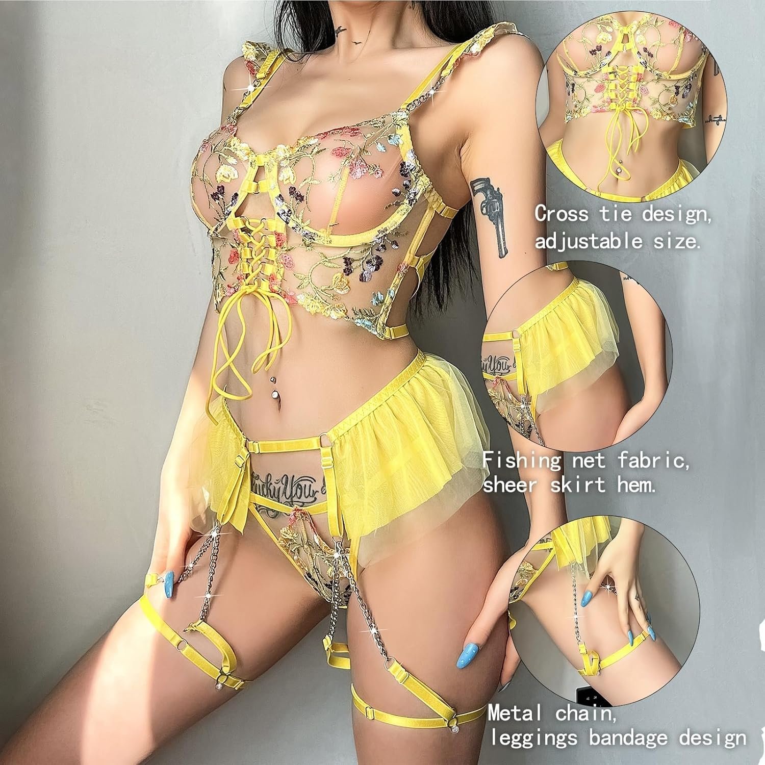 Sexy lingerie set with metal shoulder chain