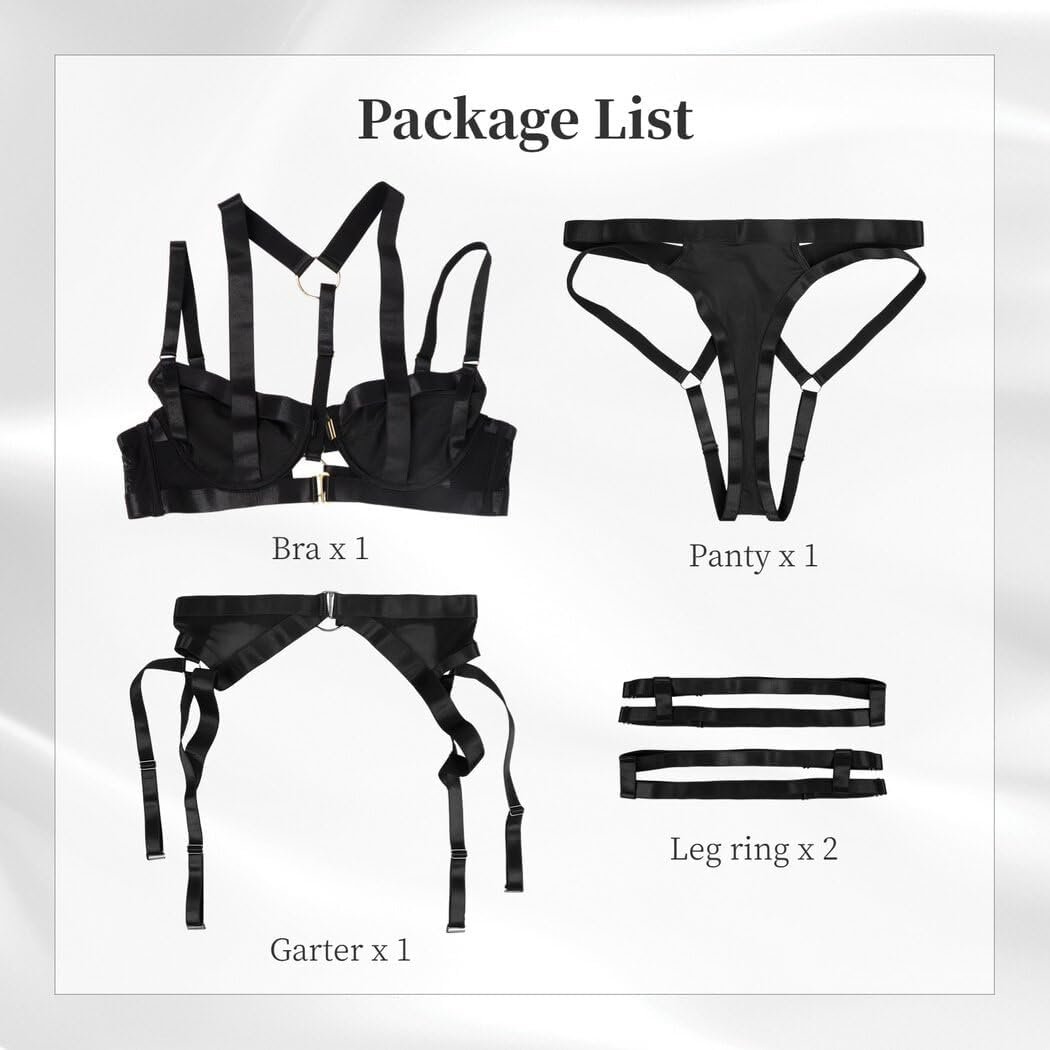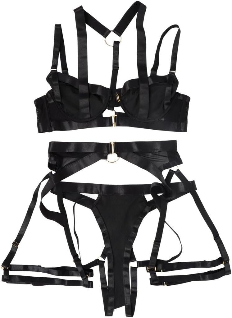 Lingerie Set For Women, Sexy Strappy Bondage Lingerie Set, Underwire Bra Leg Rings Garter Set Lingerie With Chain