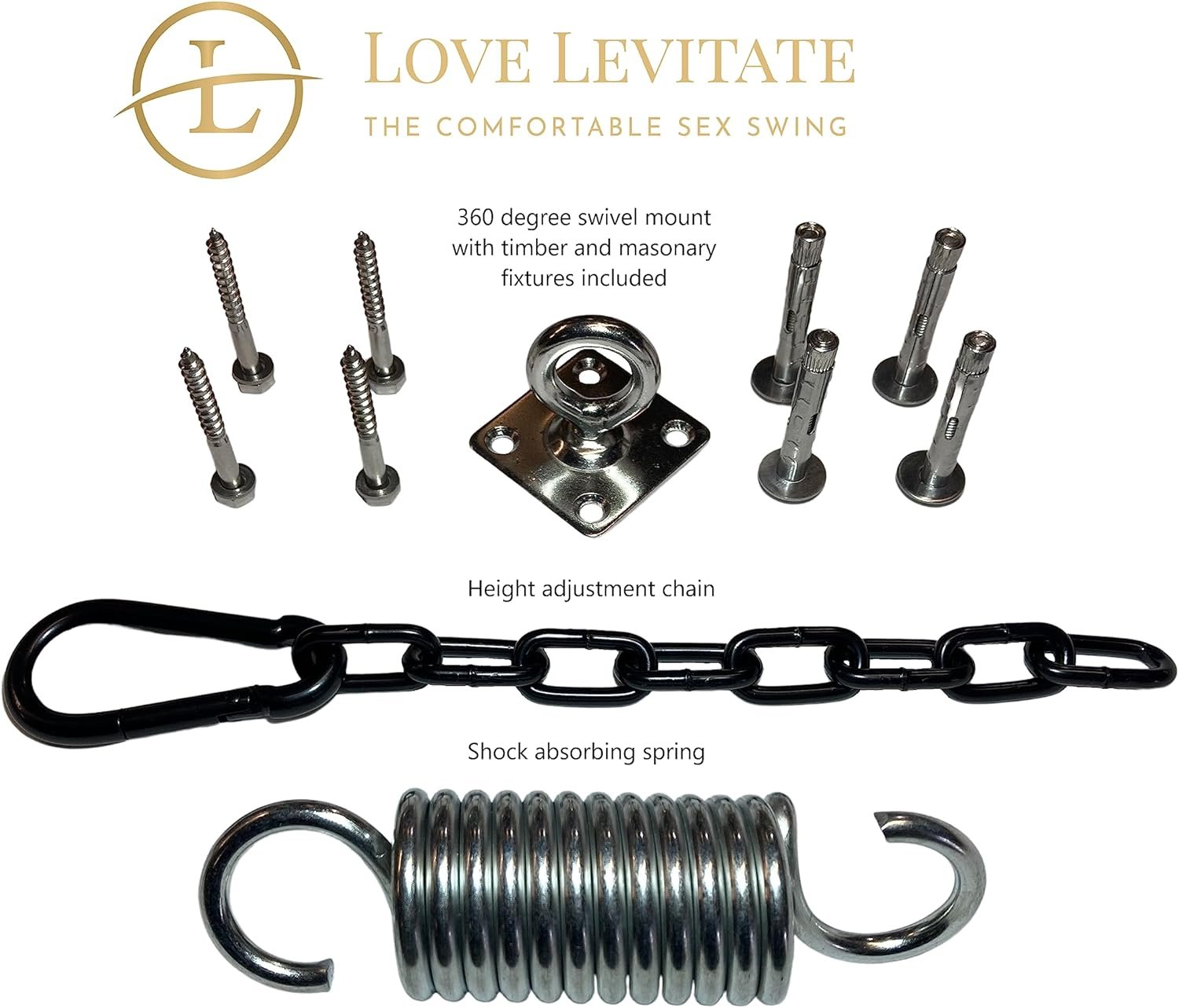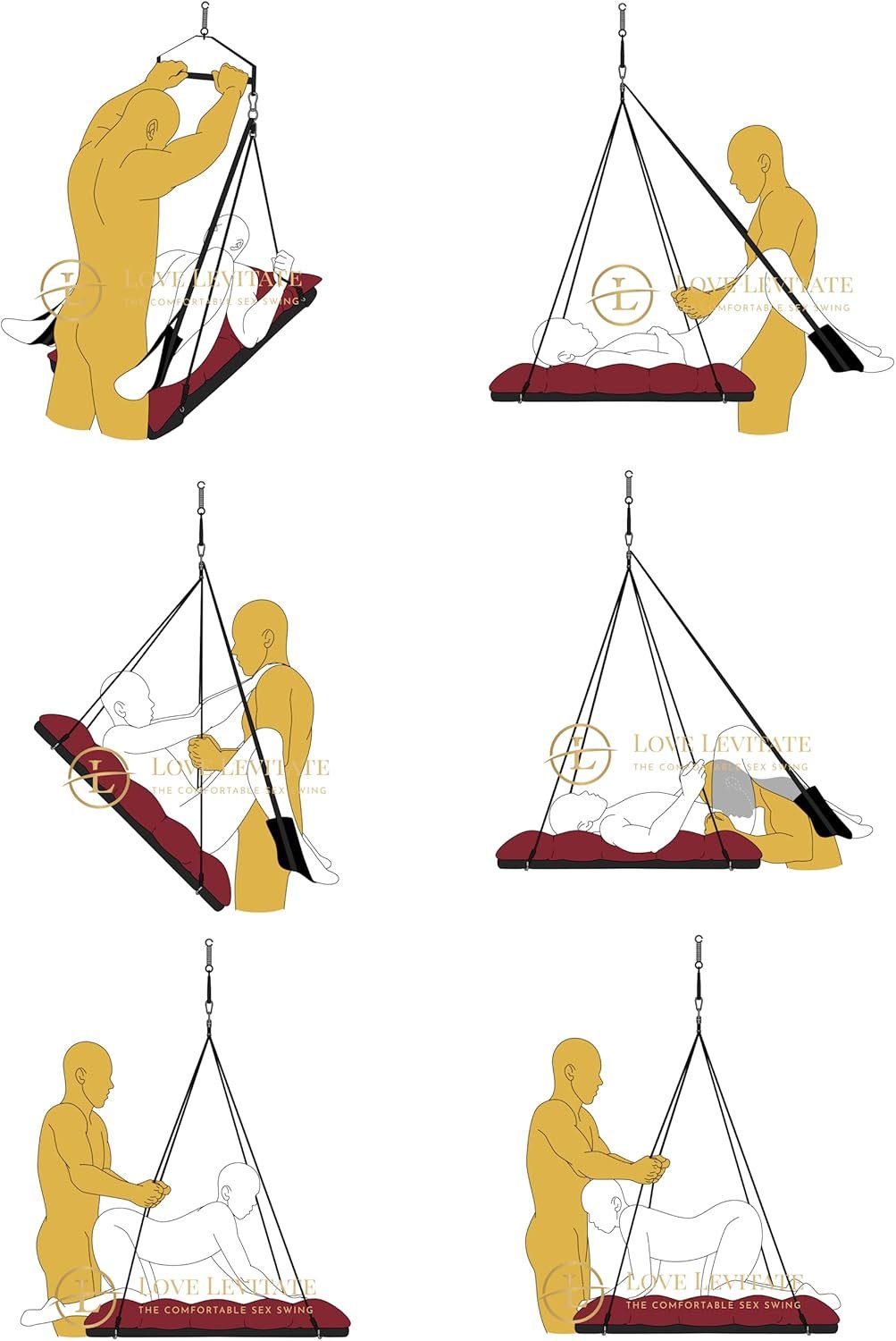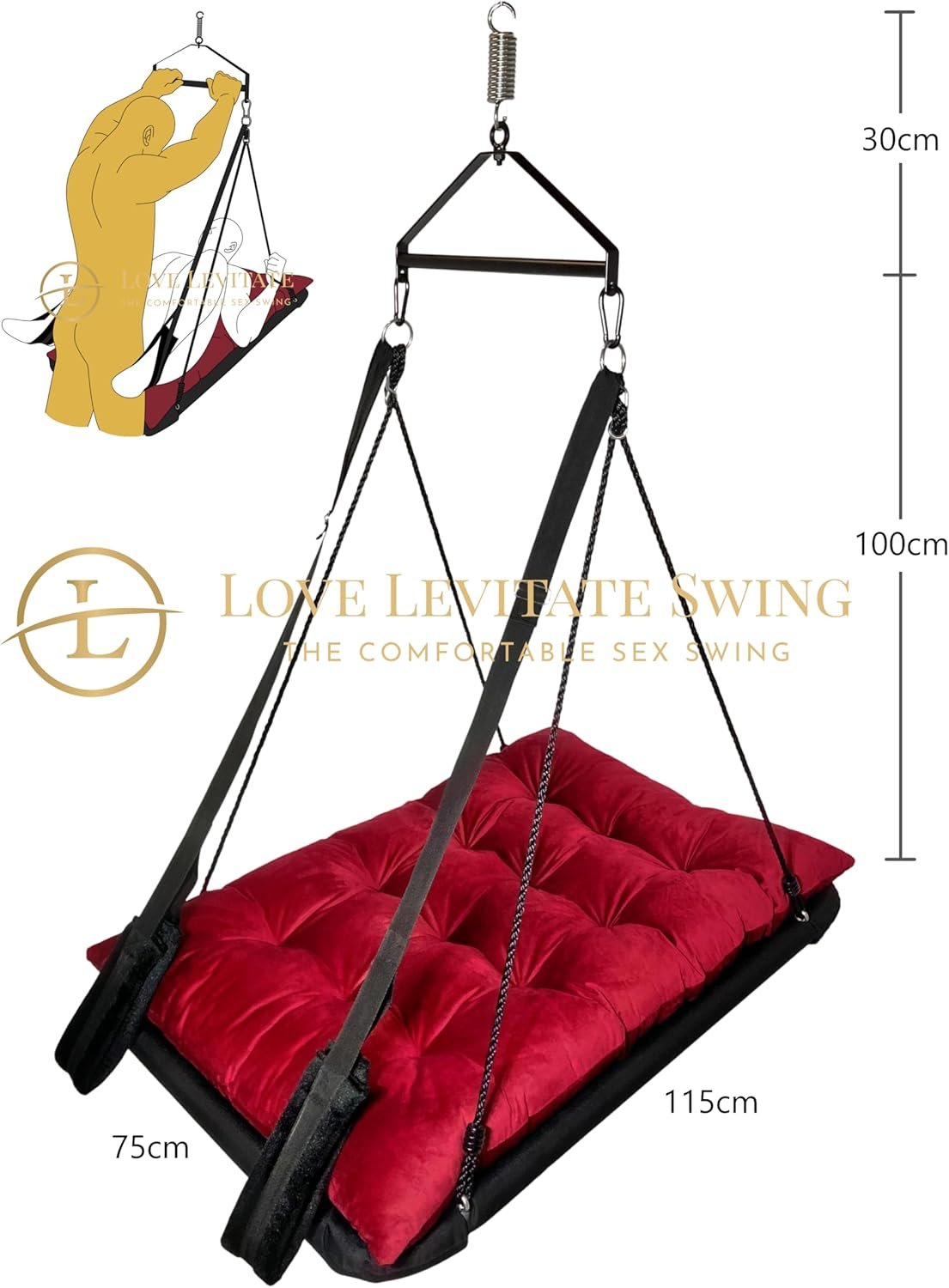Love Levitate Sex Swing – BDSM Bondage and Comfortable Sex Furniture Welcome to the Love Levitate Swing, where comfort meets desire in a comfortable sex swing. Our mission is to enhance your intimate experiences by offering a luxurious, innovative solution for couples to explore their BDSM fantasies, bondage play, and adventurous desires, all while enjoying unparalleled support and comfort. The Love Levitate Swing is an addition to any bondage or BDSM setup, designed to bring couples closer while exploring new levels of connection and pleasure. Whether you’re a seasoned enthusiast or looking to add a touch of adventure to your love life, this swing is for exploring bondage and erotic positions in complete comfort. Crafted from high-quality materials, this sex furniture ensures a blissful experience for both partners, regardless of gender. The plush cushioning and durable, adjustable straps provide optimal support during intense play sessions, so you can focus entirely on each other and the sensations you share. For all levels of BDSM play, the Love Levitate Sex Swing is a versatile and essential piece of bondage furniture. Easy to install, the Love Levitate Sex Swing comes with step-by-step instructions, allowing you to set it up quickly and discreetly. Its clever design also enables convenient storage, making it a practical addition to your intimate space. Whether you’re experimenting with new BDSM positions or enjoying classic bondage play, this swing is your gateway to deeper intimacy and unforgettable experiences. Try the Love Levitate Sex Swing and experience the ultimate in comfort, pleasure, and bondage. With discreet delivery and plain packaging, your privacy is always protected.