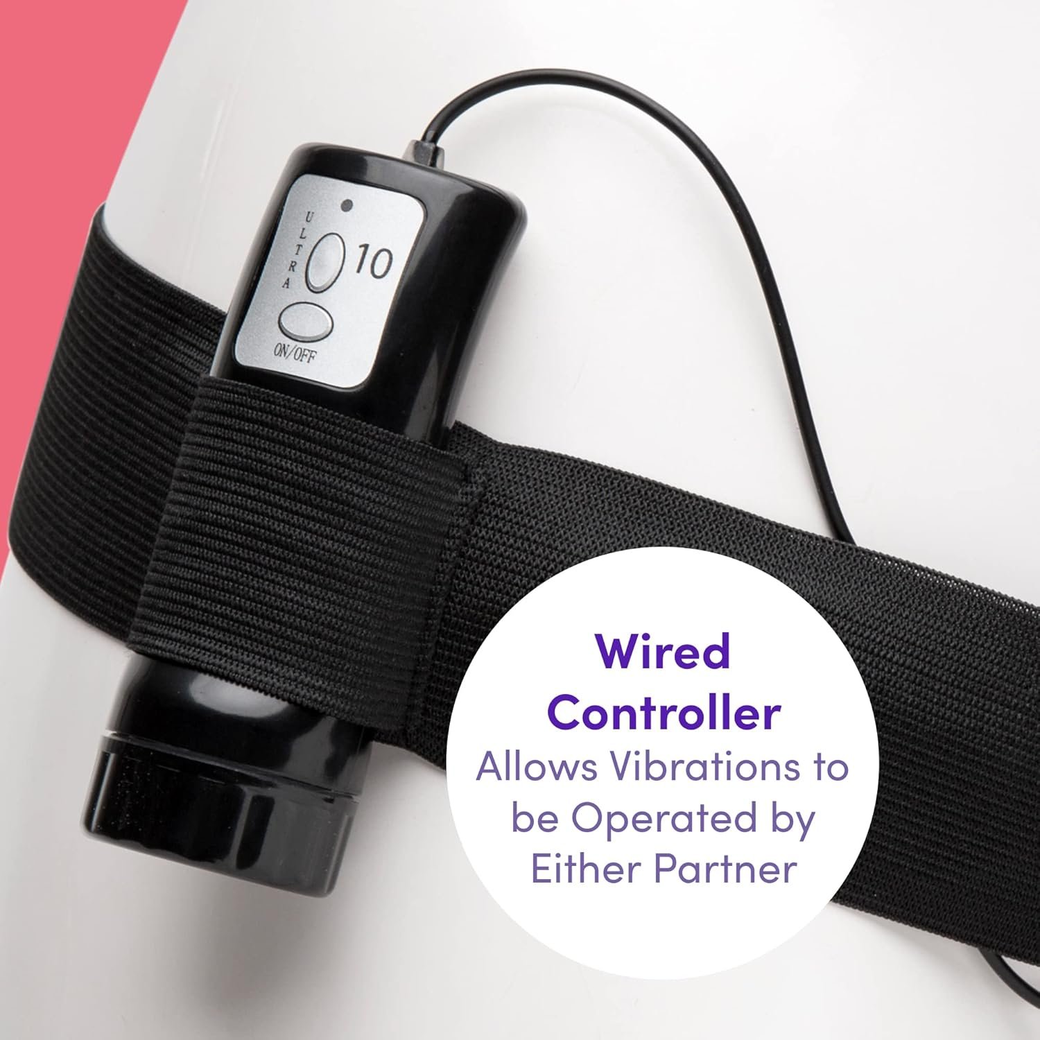 WIRED CONTROLLER ALLOWS VIBRATIONS TO BE OPERATED BY EITHER PARTNER: A loop in the waistband keeps the 10 function wired dildo controller conveniently at hand, or switch things up by giving it to the receiver.