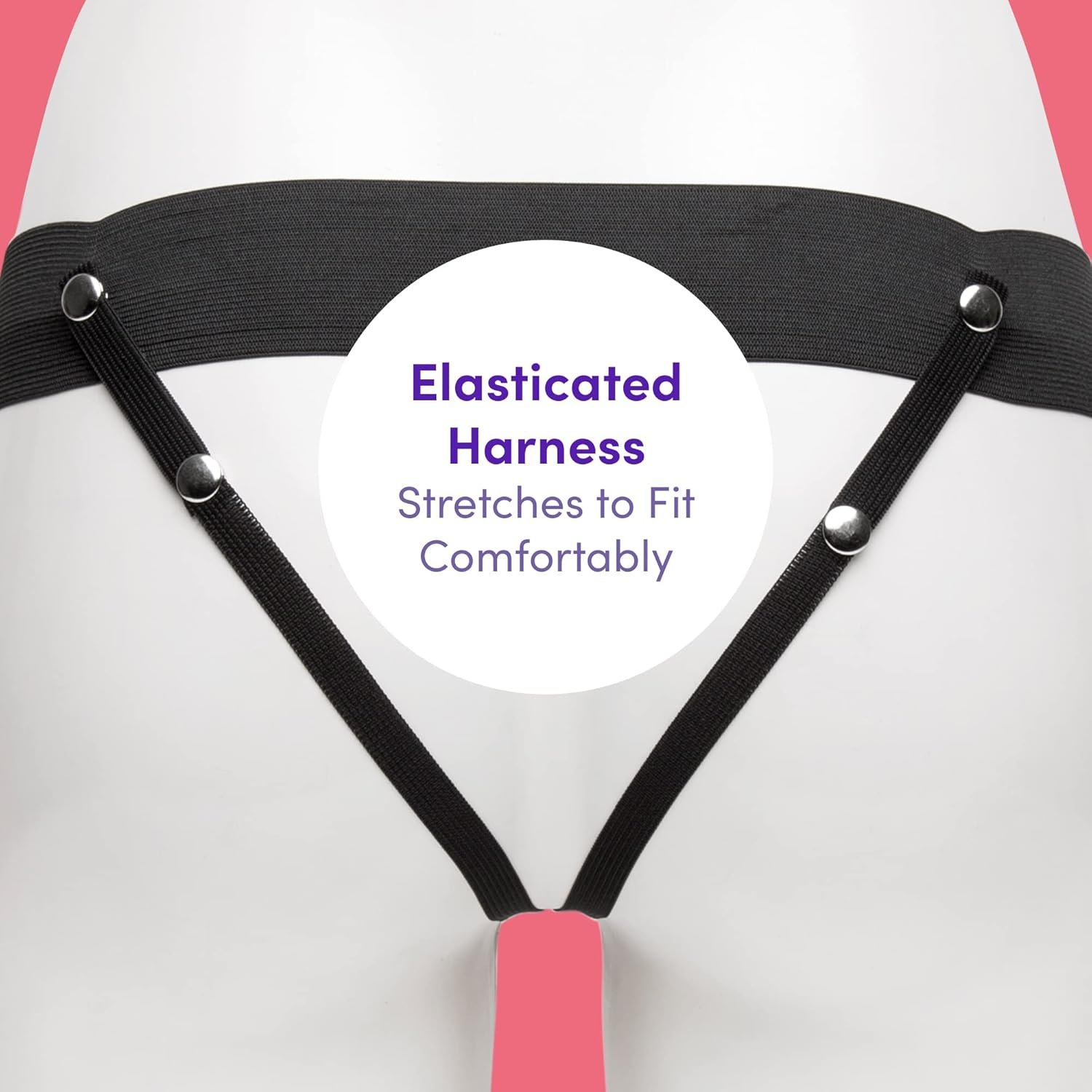 ELASTICATED HARNESS STRETCHES TO FIT COMFORTABLY: A thick elastic waistband stretches comfortably around her hips, while a second slim set of straps ensures the black vibrating dildo is well anchored.