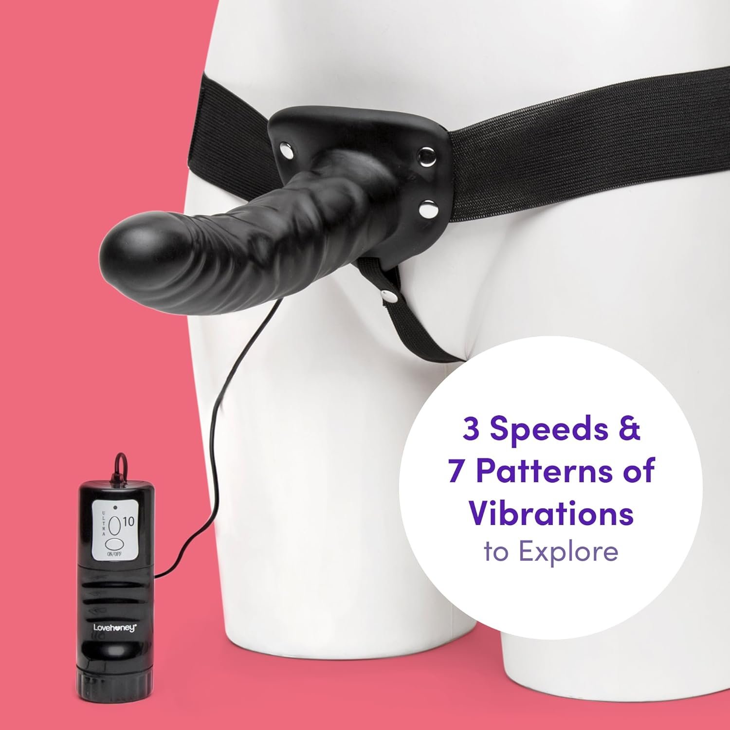 8″ HOLLOW VIBRATING DILDO FOR STRAP-ON AND PEGGING PLAY: Make your fantasies come true with a perfect partner, primed to deliver incredible penetrative strap-on play. The vibrating dong offers an array of speeds and patterns to satisfy your every strap-on or anal dildo pegging whim.