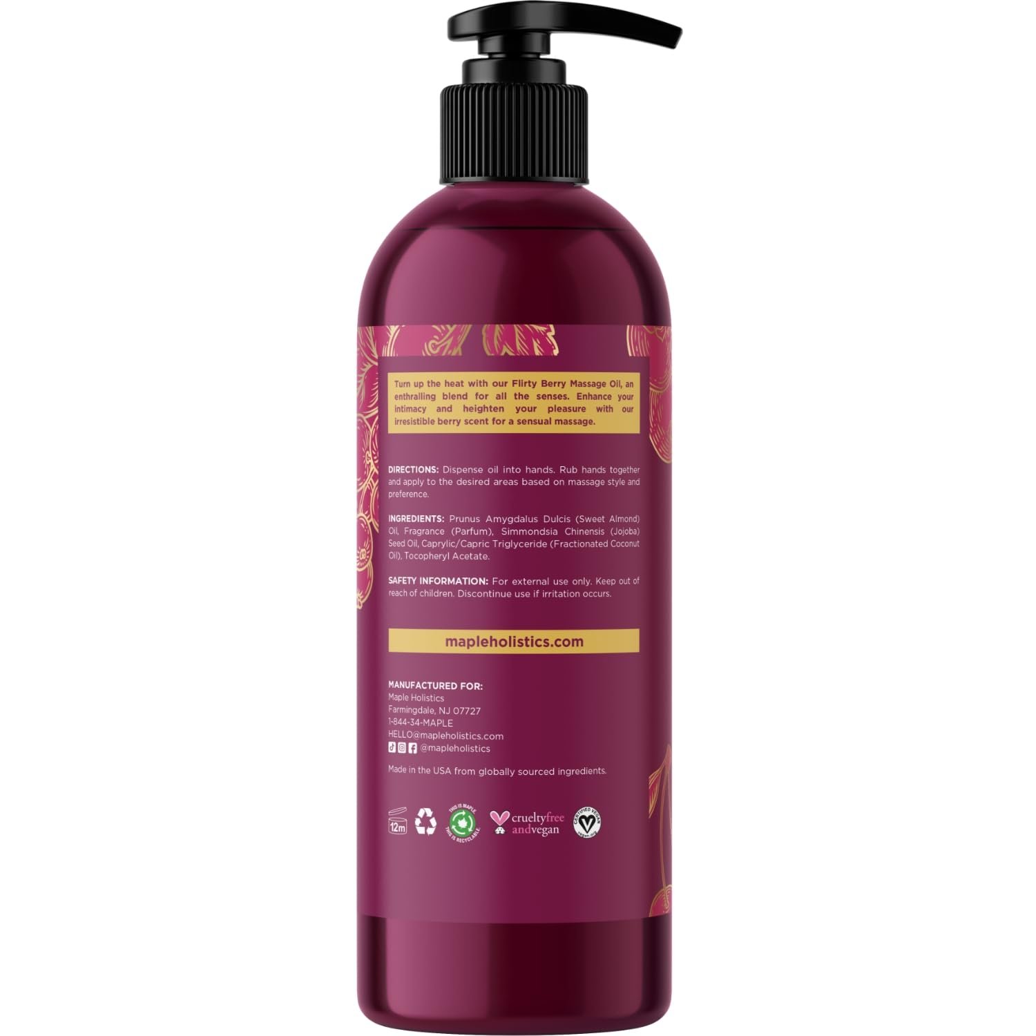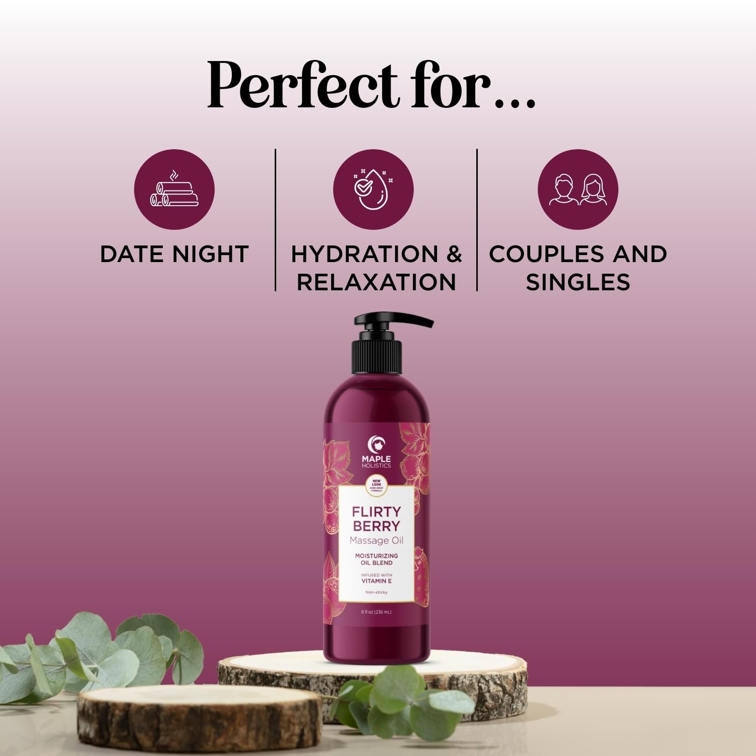 Luxurious Vanilla & Flirty Berry Massage Oil Set – Aromatherapy Full Body Massage Oil for Couples Bundle with Naturally Scented Vegan & Non GMO Ingredients (8 Fl Oz Each)