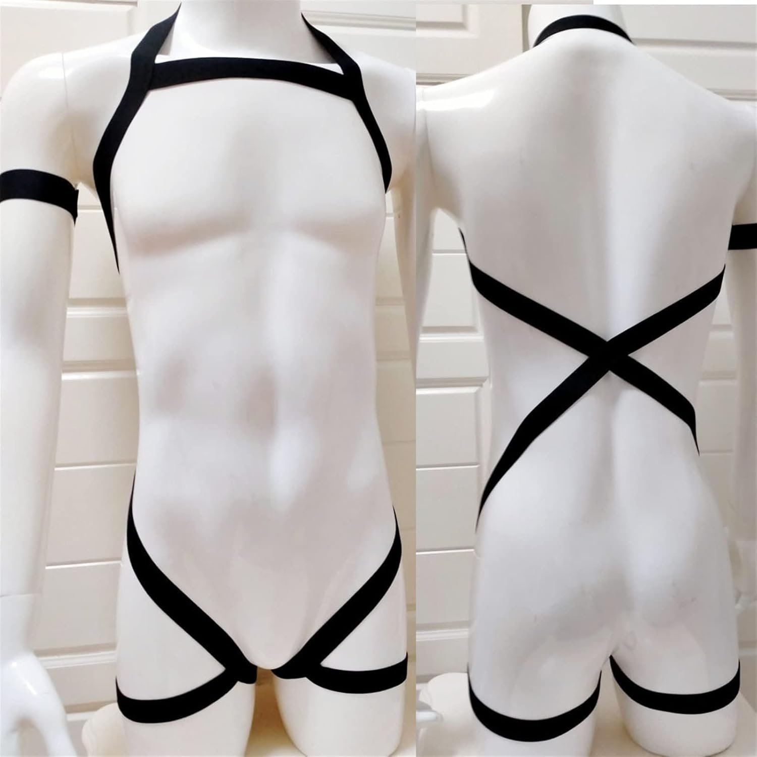 Male Elastic Lingerie Body Bondage Harness Set Gay Clothing Chest Cage Belts Sexy Sexual Straps Hollow Out Costumes for Sex (Color : Ivory, Size : One Size)