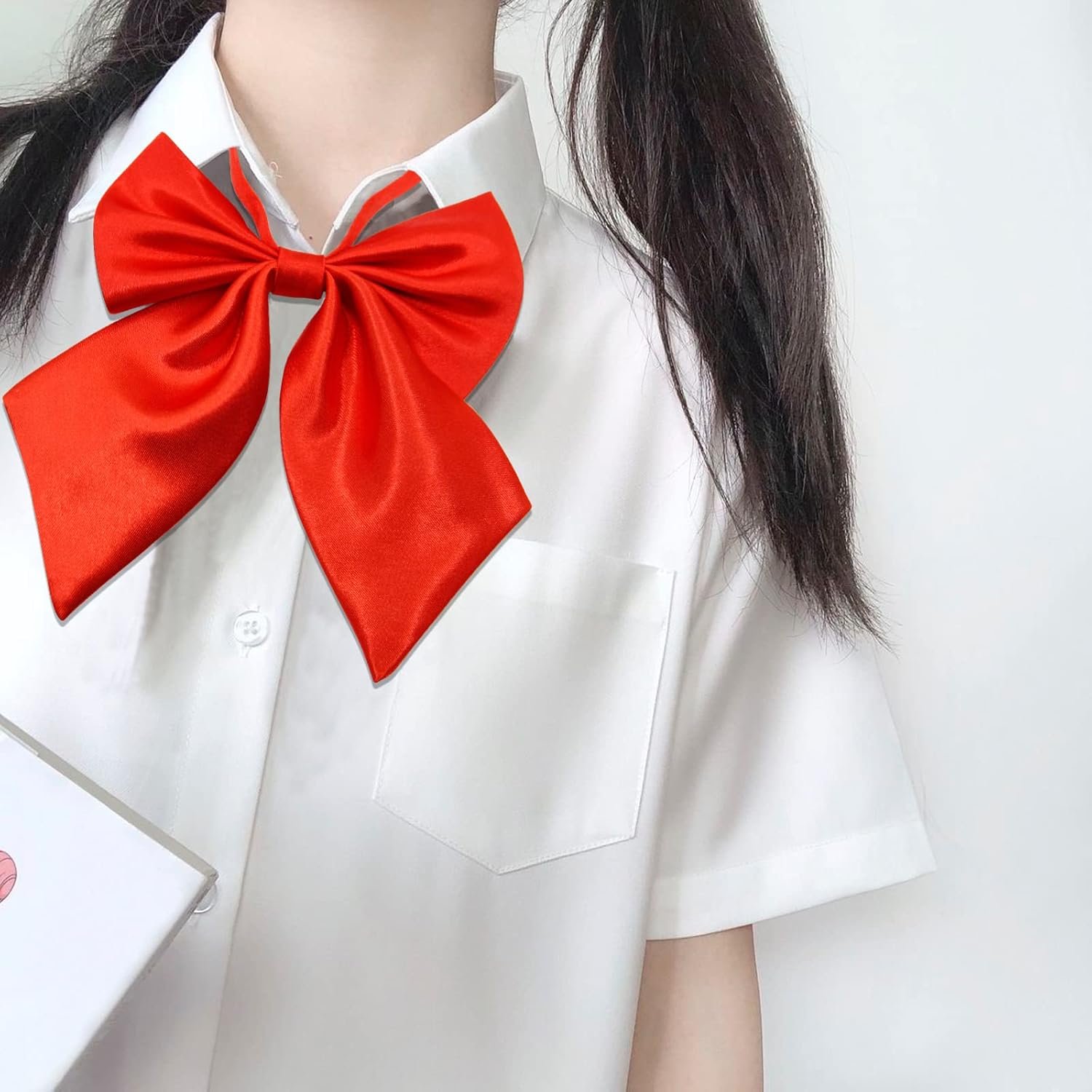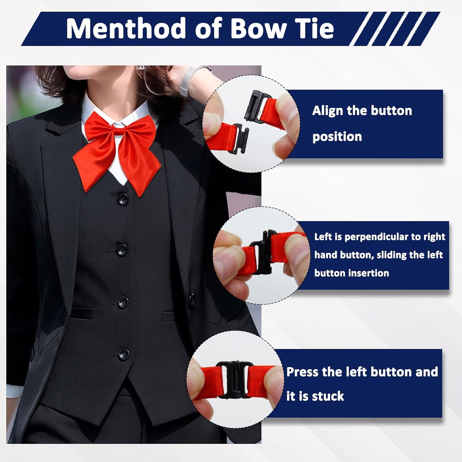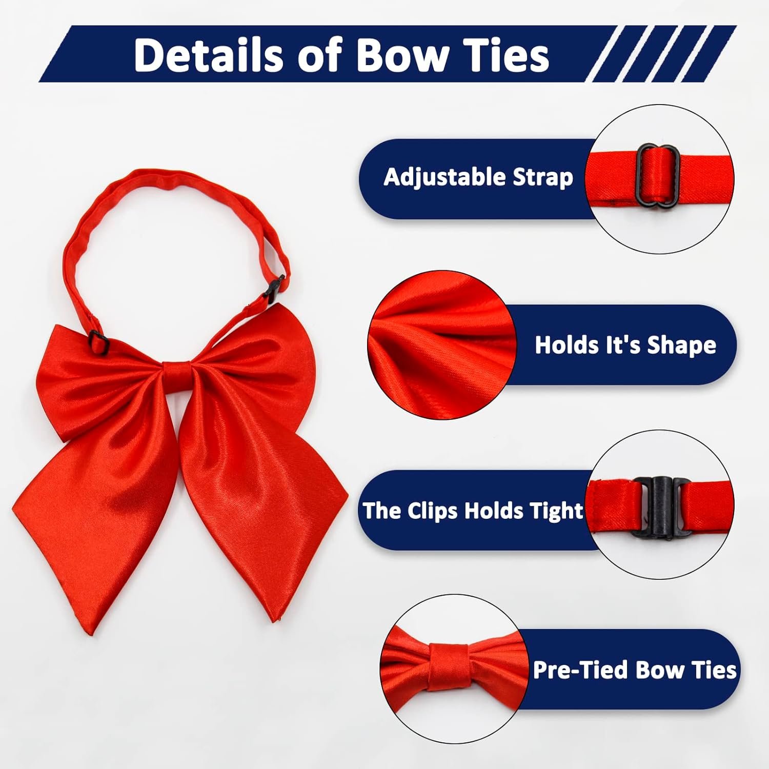 Mantieqingway Adjustable Pre-tied Bow Tie for Girls Uniform Solid Color Bowties for Women Ties