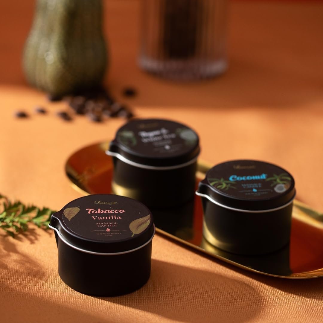 1 PACK WITH 3 SCENTS. Get one pack with 3 different scents. Enjoy your massage experience with a luxurious massage candle that turns from candle to warm massage oil. The nourishing oil will soften the skin and leaving it quite smooth. Level up your home SPA experience. The moisturizing natural oil can help calm down and unwind.