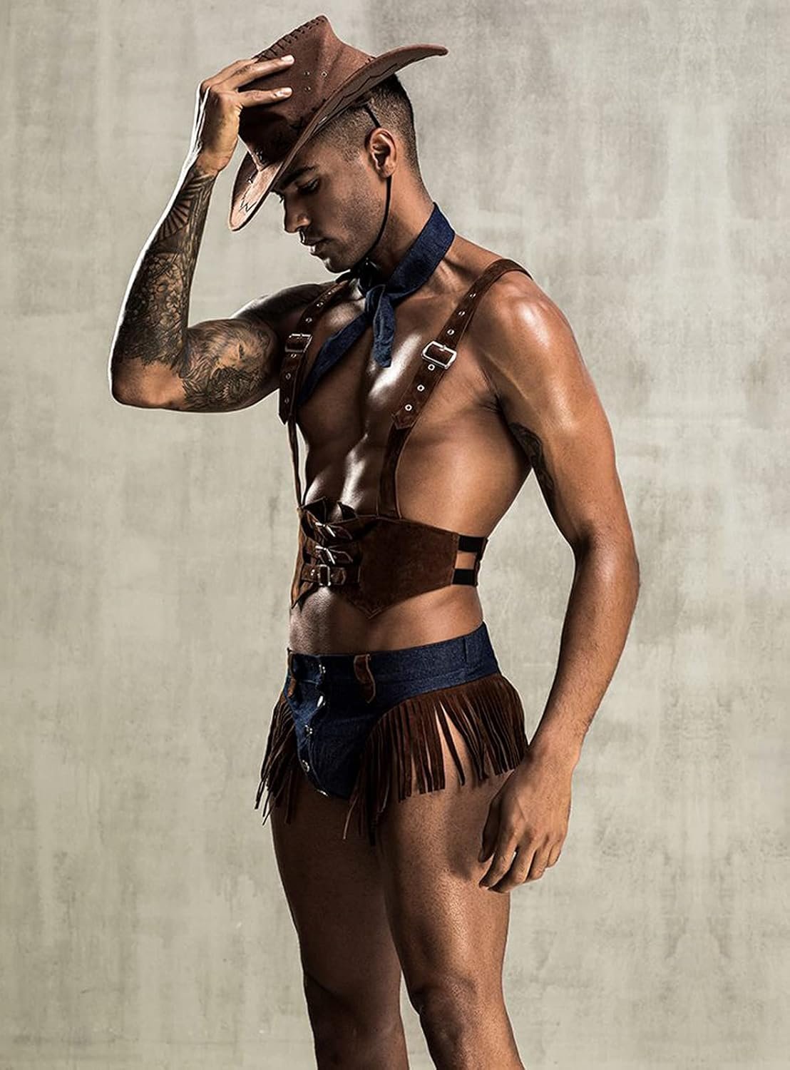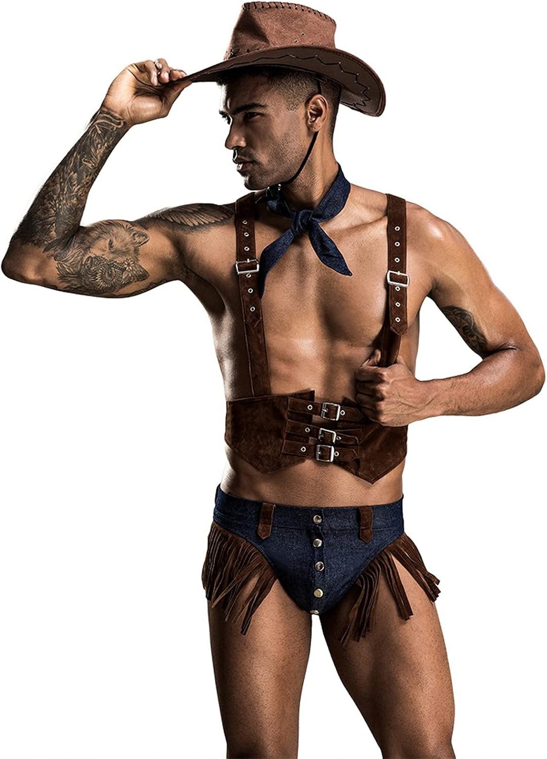 Mens Sexy Lingerie Set Role Play Cowboy Boy Uniform Night Club Costume Outfit